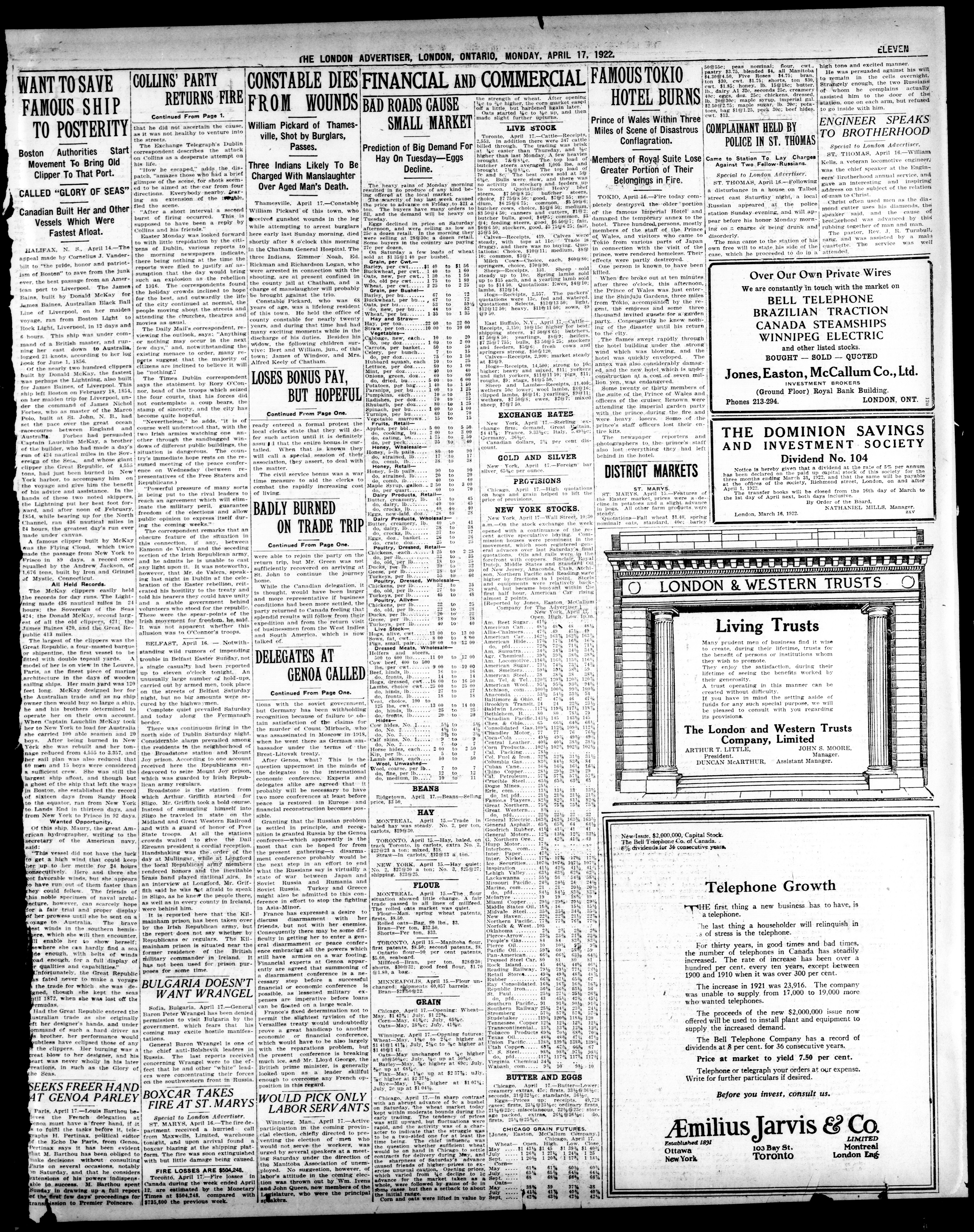London advertiser. : The London Advertiser : 59th Year, No. 23312 (April 17, 1922)