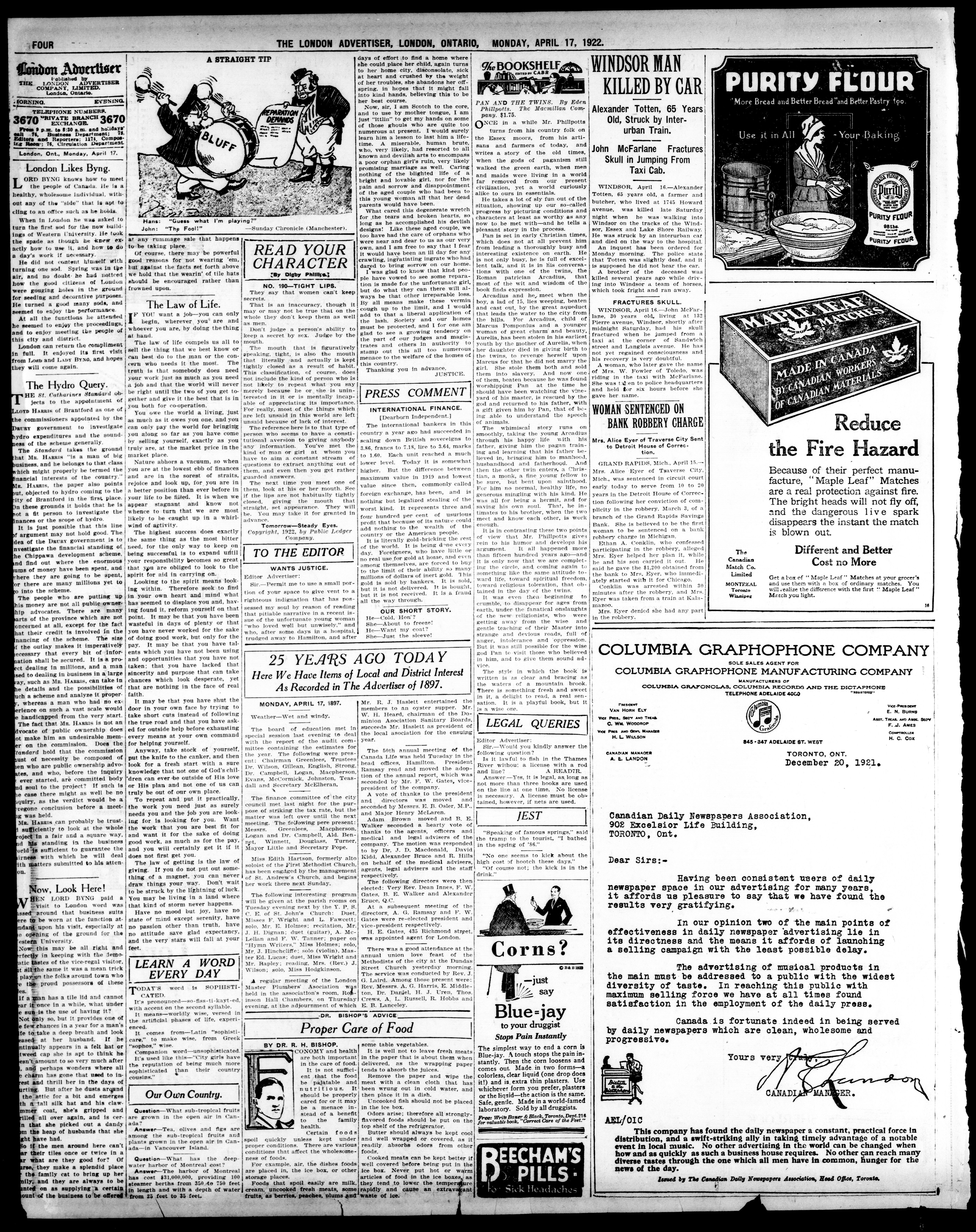 - The London Advertiser : 59th Year, No. 23312 (April 17, 1922)