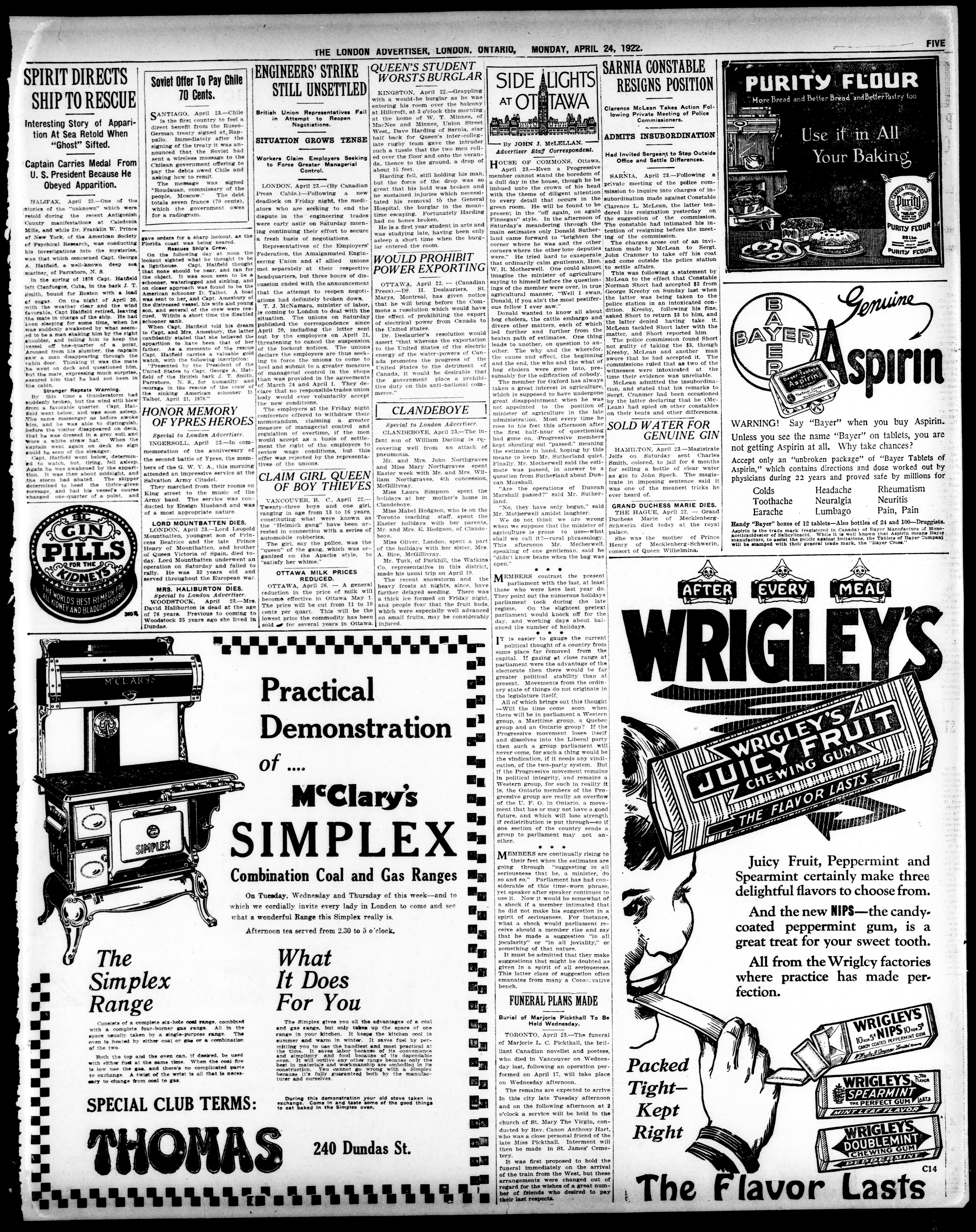 London advertiser. : The London Advertiser : 59th Year, No. 23318 (April 24, 1922)