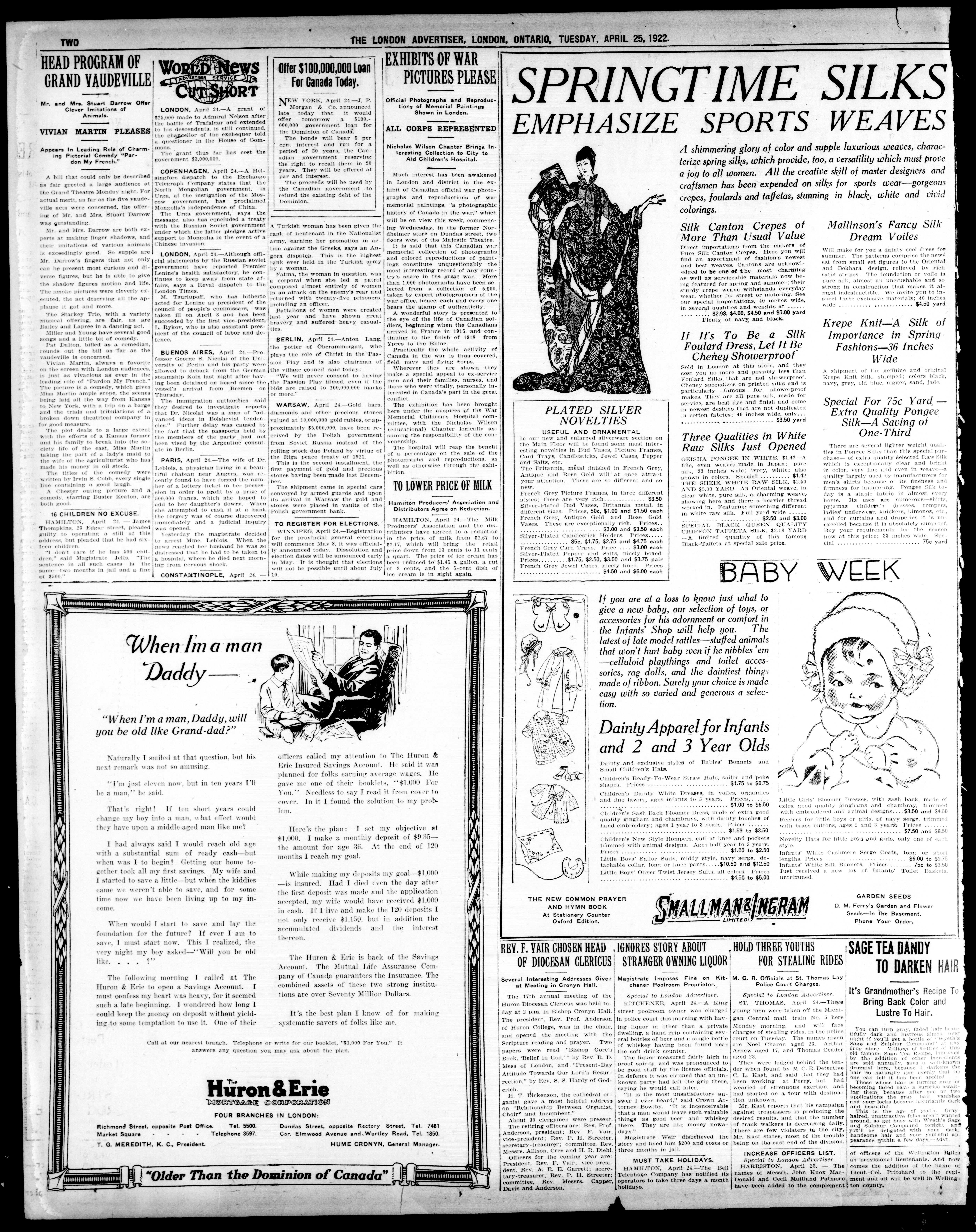 - The London Advertiser : 59th Year, No. 23319 (April 25, 1922)
