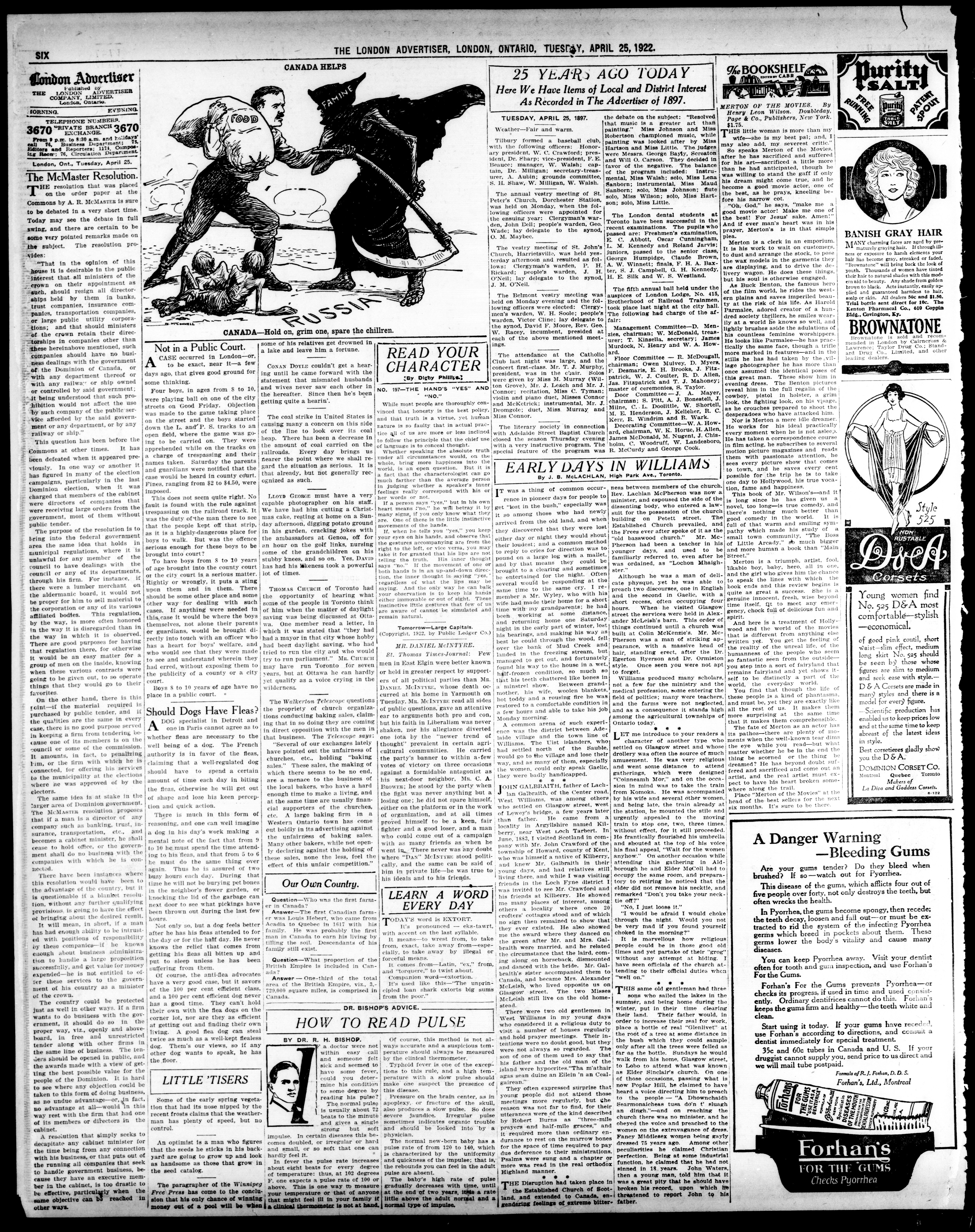 London advertiser. : The London Advertiser : 59th Year, No. 23319 (April 25, 1922)