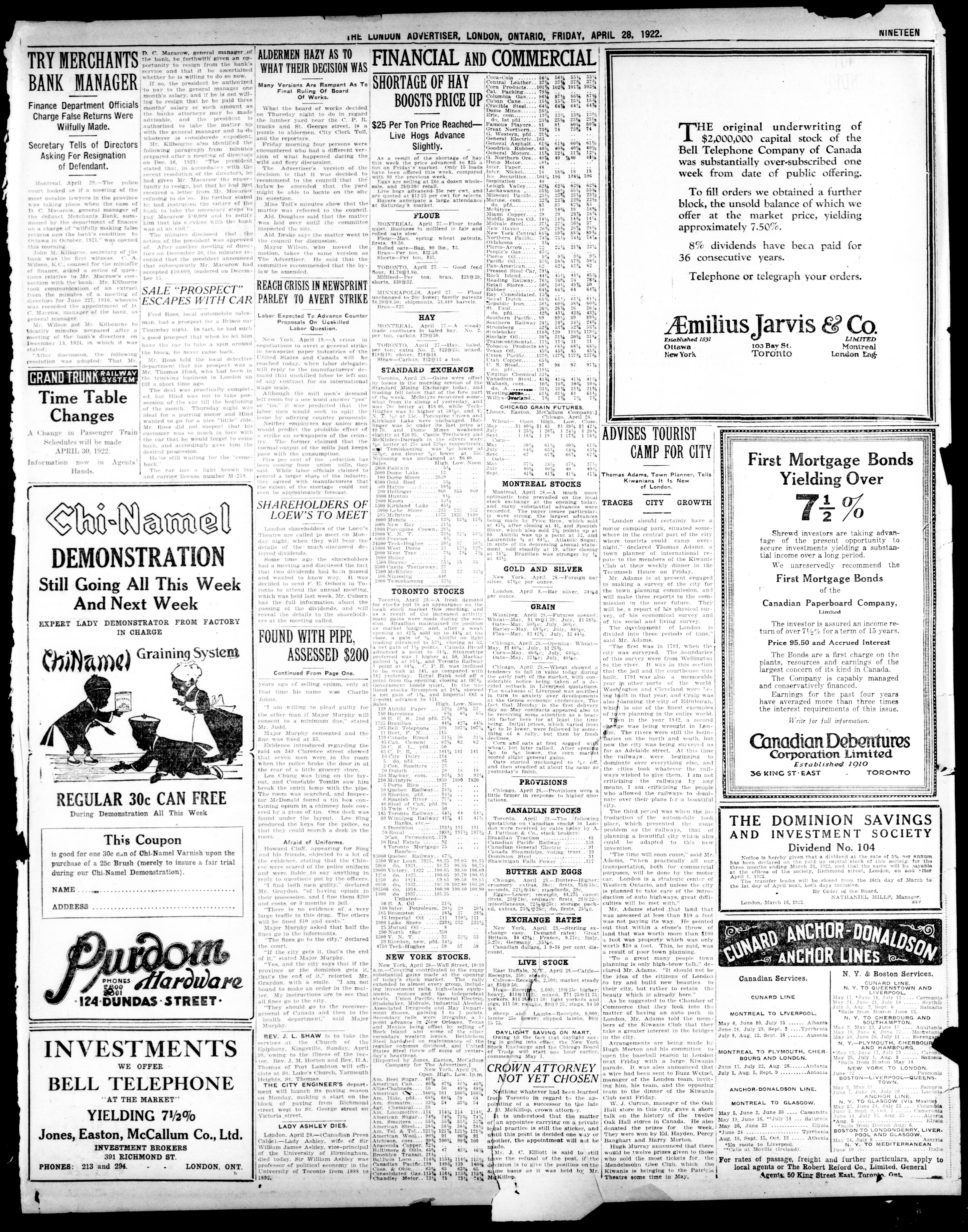 - The London Advertiser : 59th Year, No. 23322 (April 28, 1922)