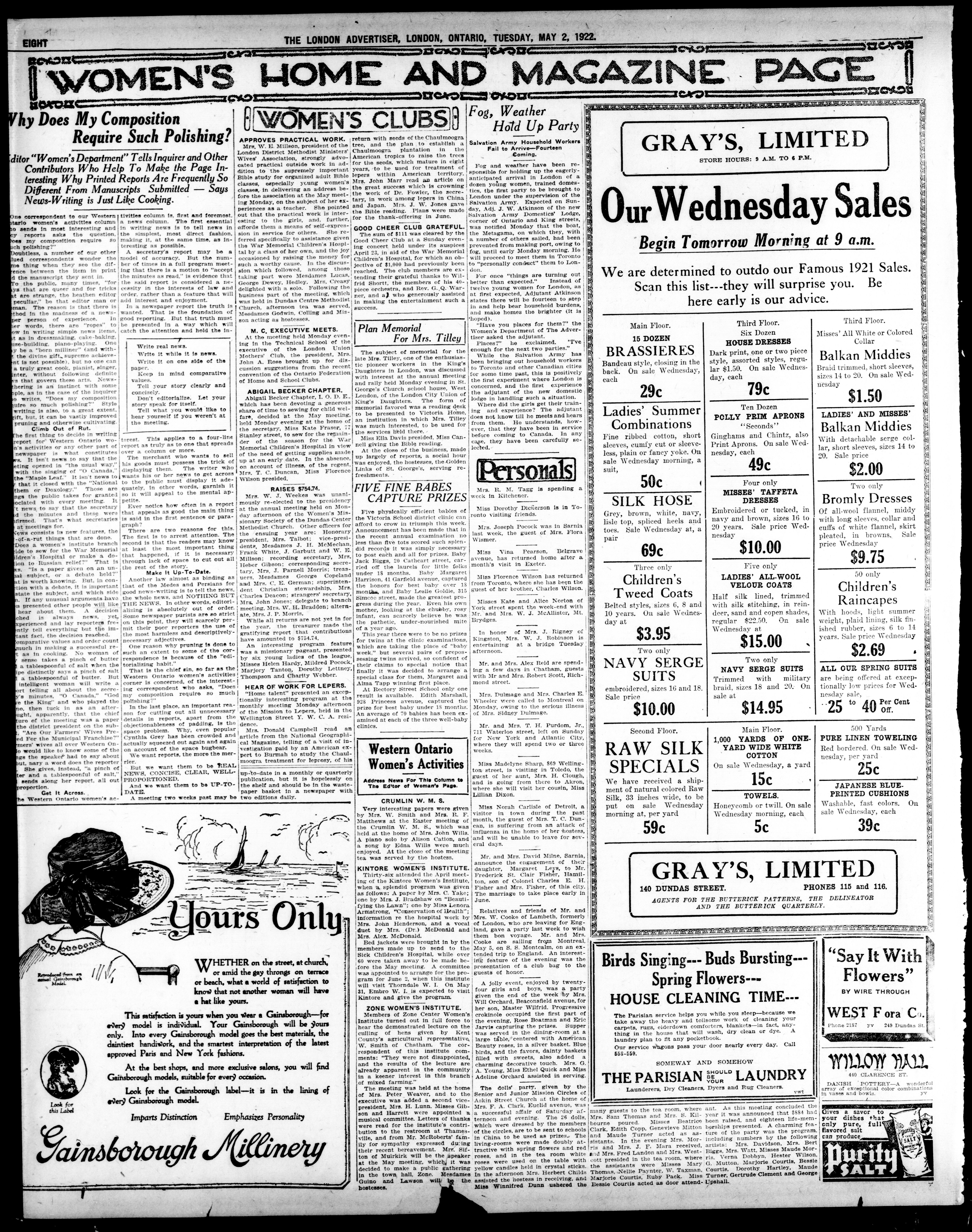 - The London Advertiser : 59th Year, No. 23325 (May 2, 1922)