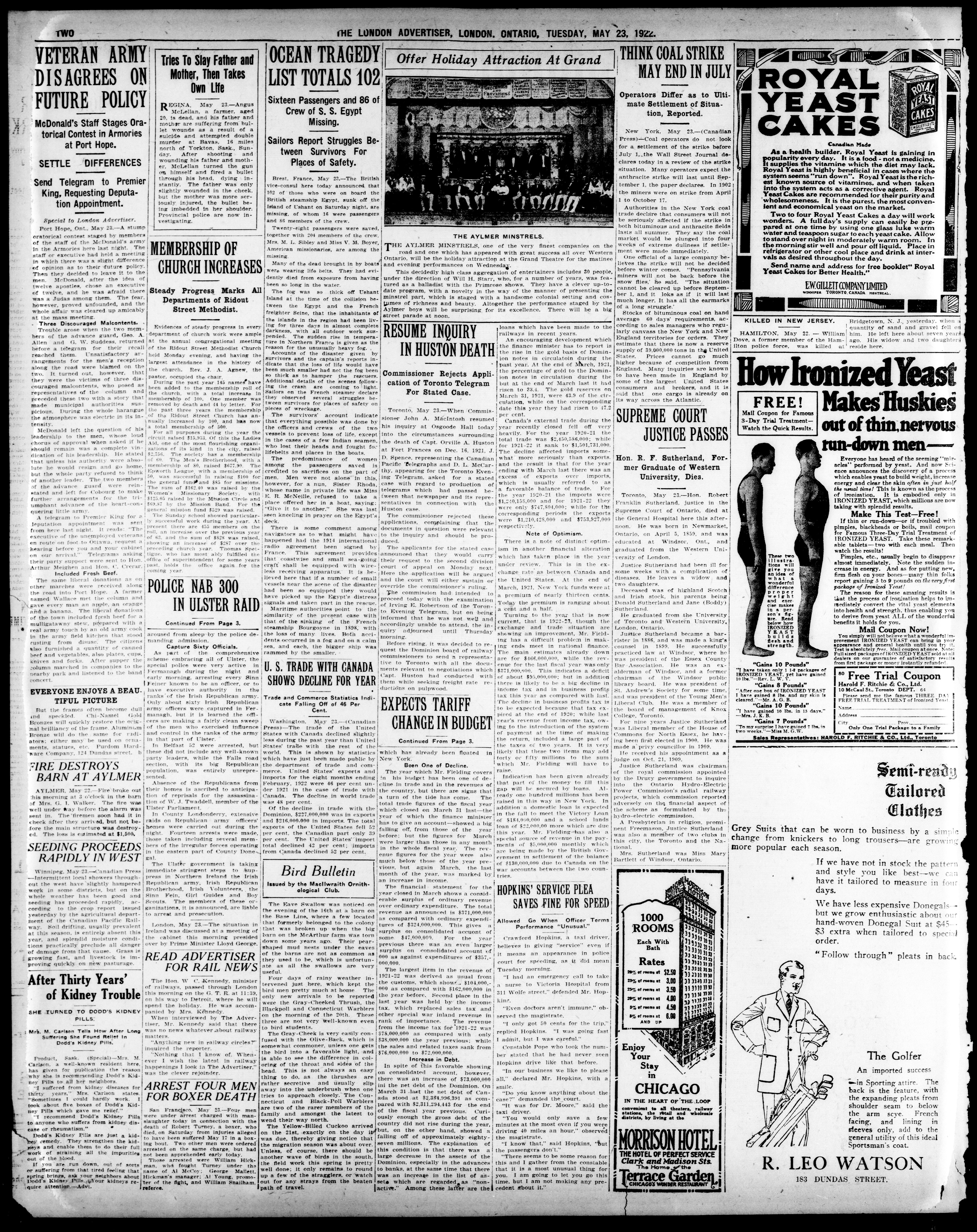 London advertiser. : The London Advertiser : 59th Year, No. 23343 (May 23, 1922)