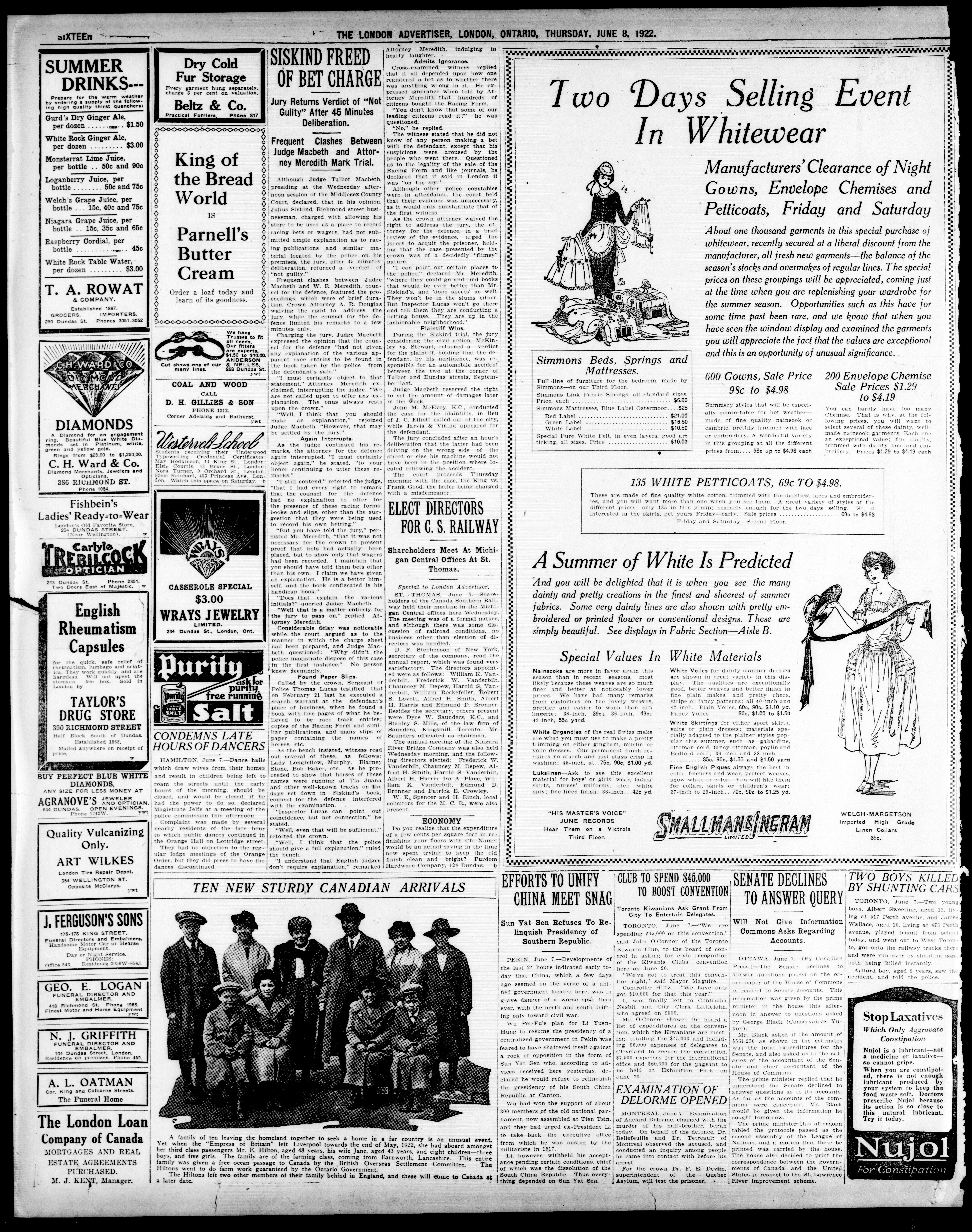 - The London Advertiser : 59th Year, No. 23357 (June 8, 1922)