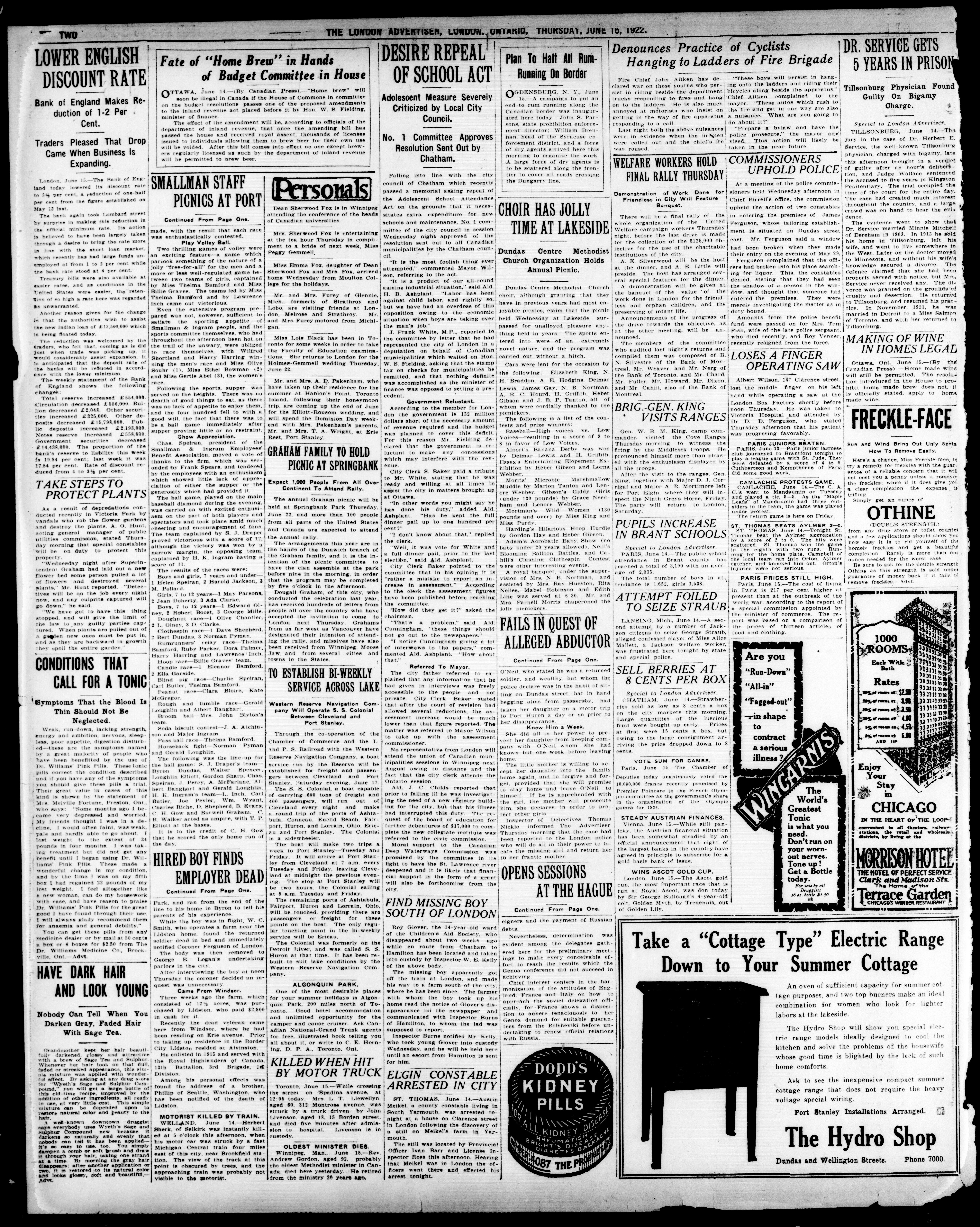 London advertiser. : The London Advertiser : 59th Year, No. 23363 (June 15, 1922)