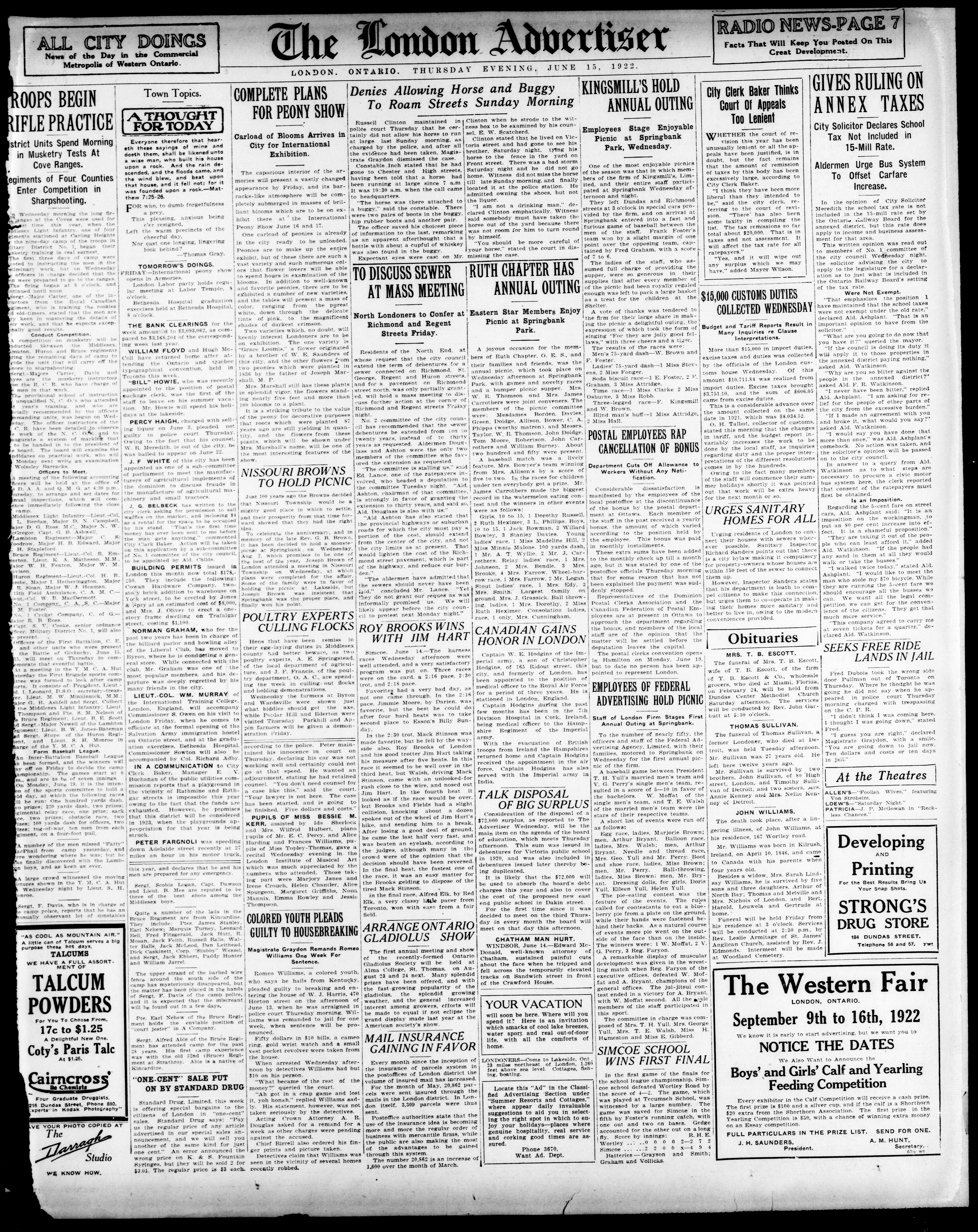 London advertiser. : The London Advertiser : 59th Year, No. 23363 (June 15, 1922)