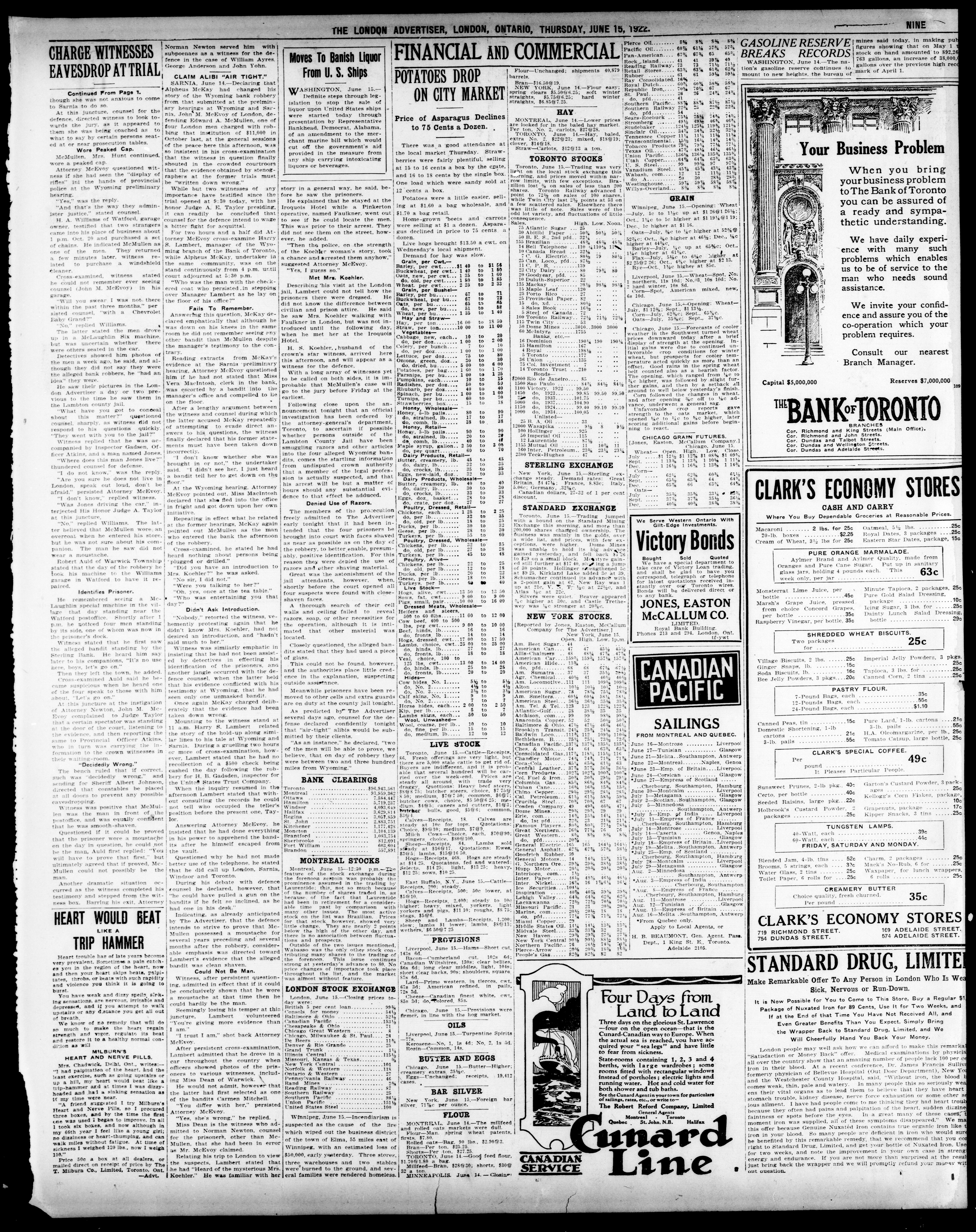 London advertiser. : The London Advertiser : 59th Year, No. 23363 (June 15, 1922)