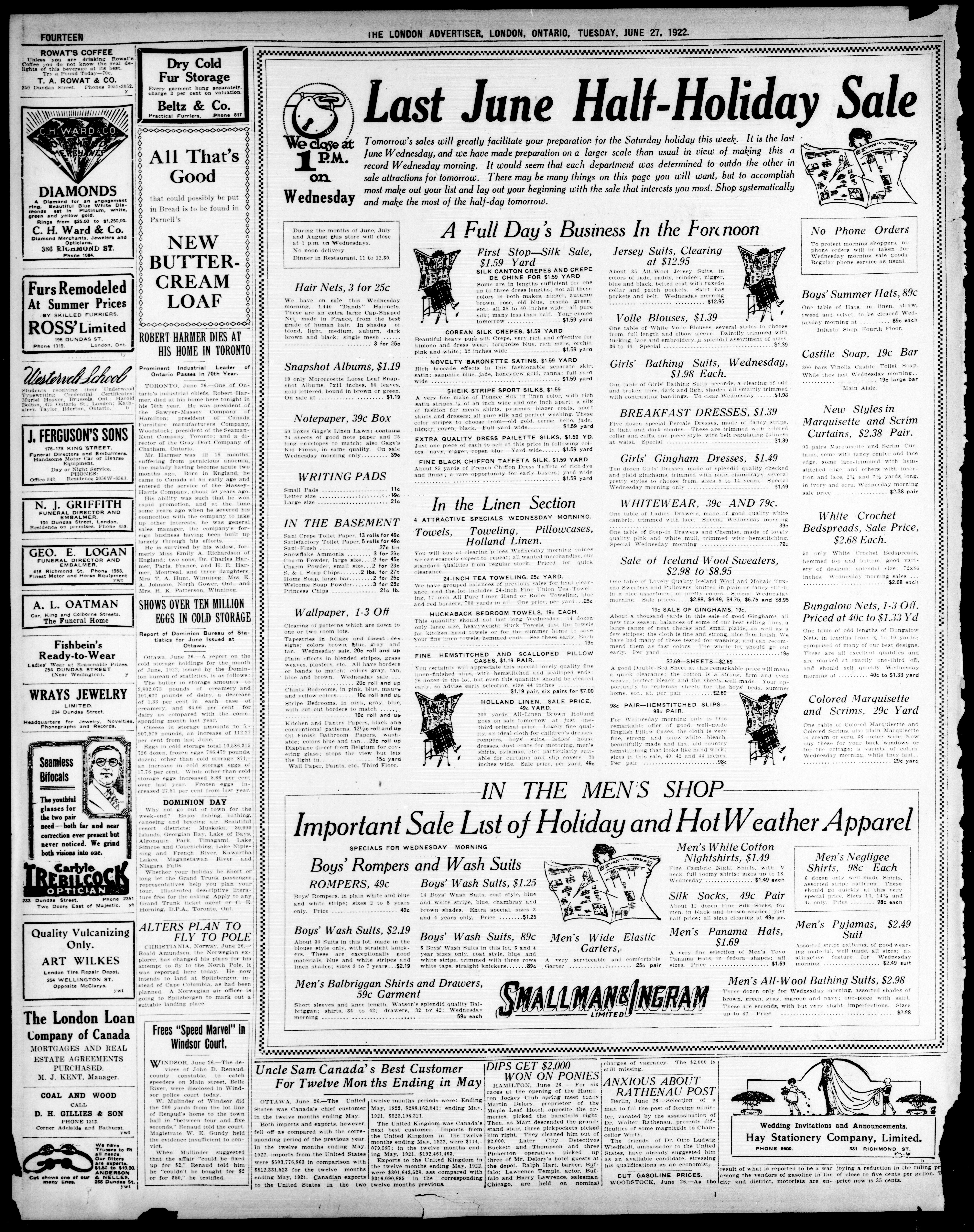 London advertiser. : The London Advertiser : 59th Year, No. 23373 (June 27, 1922)
