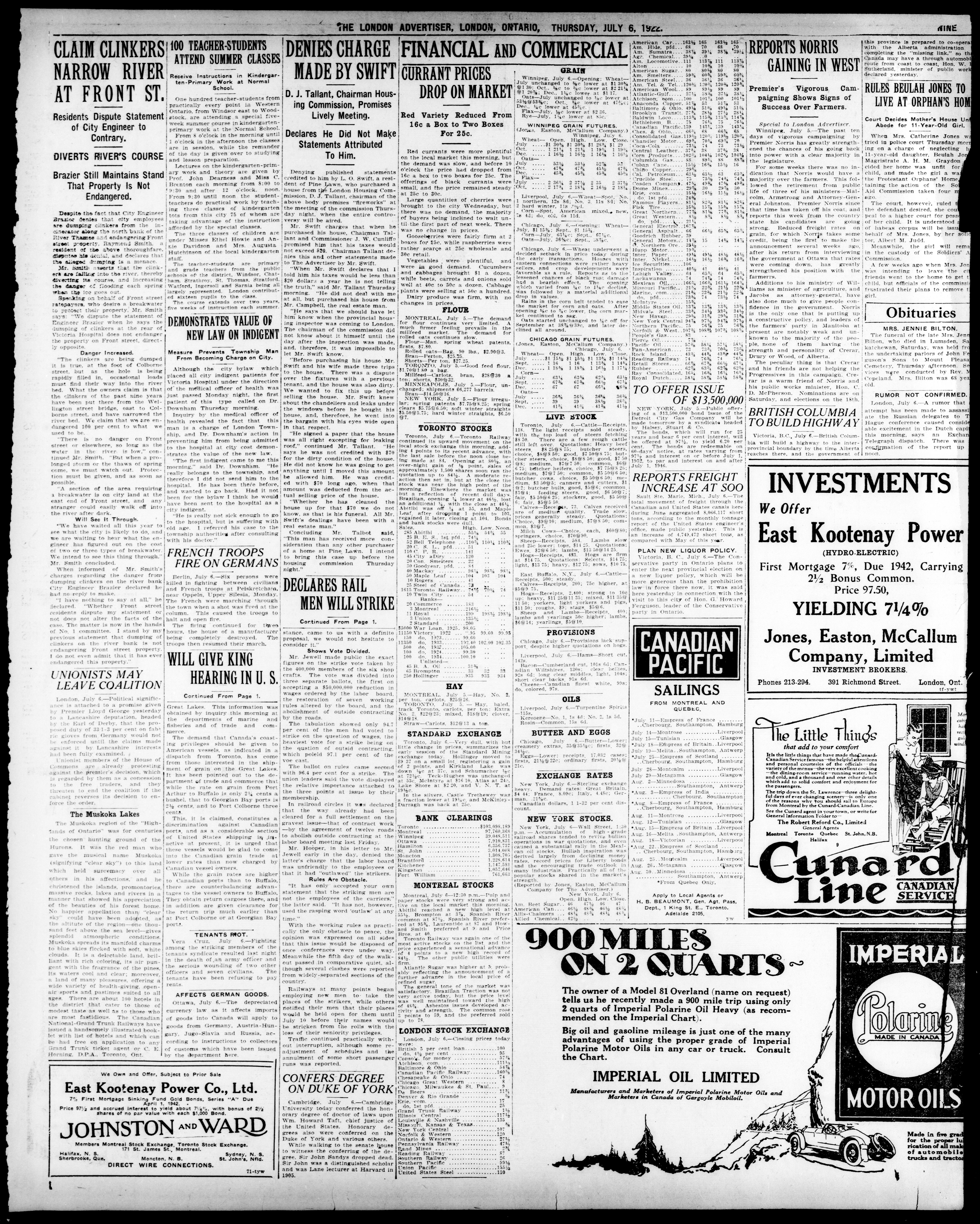 London advertiser. : The London Advertiser : 59th Year, No. 23381 (July 6, 1922)
