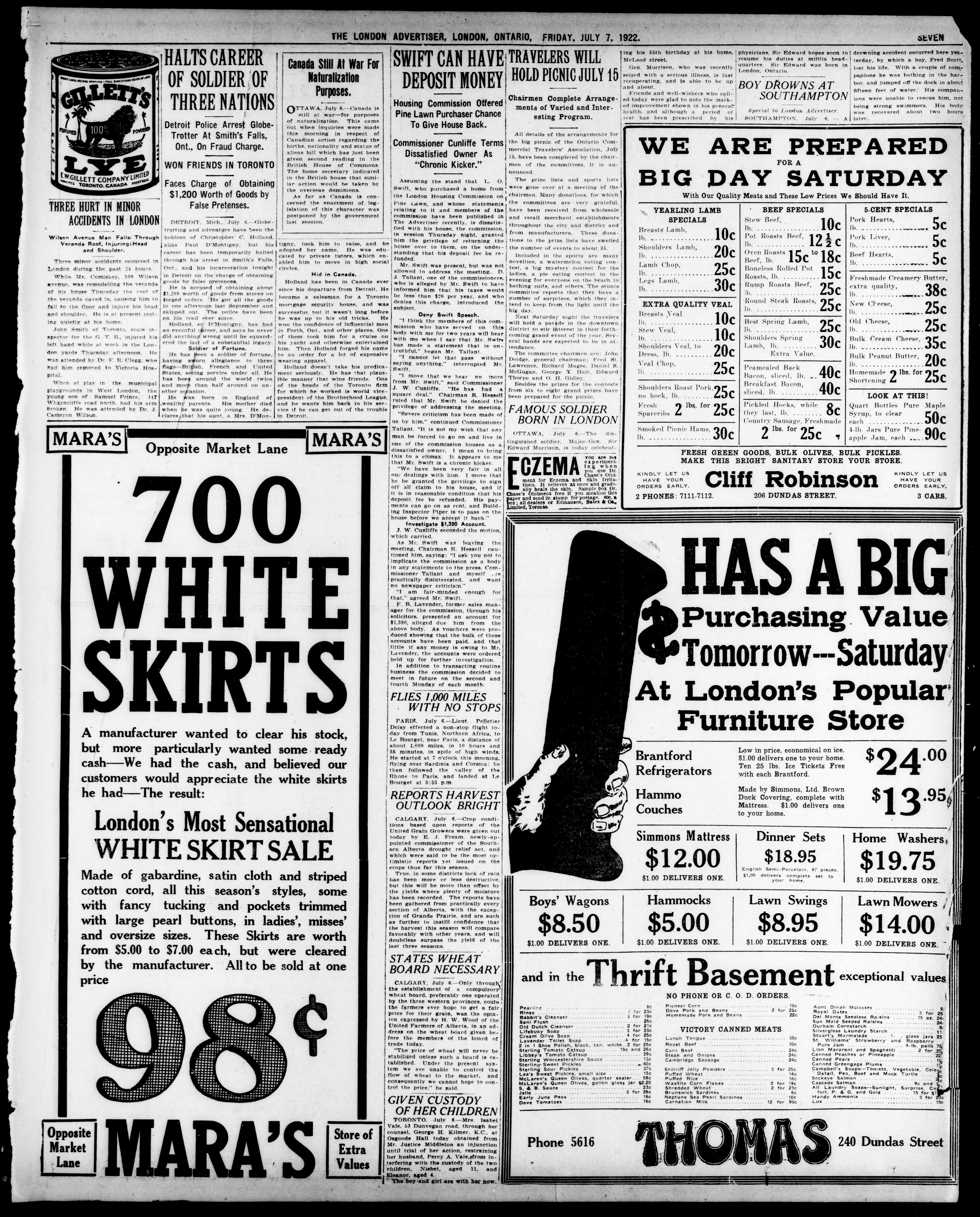 London advertiser. : The London Advertiser : 59th Year, No. 23382 (July 7, 1922)
