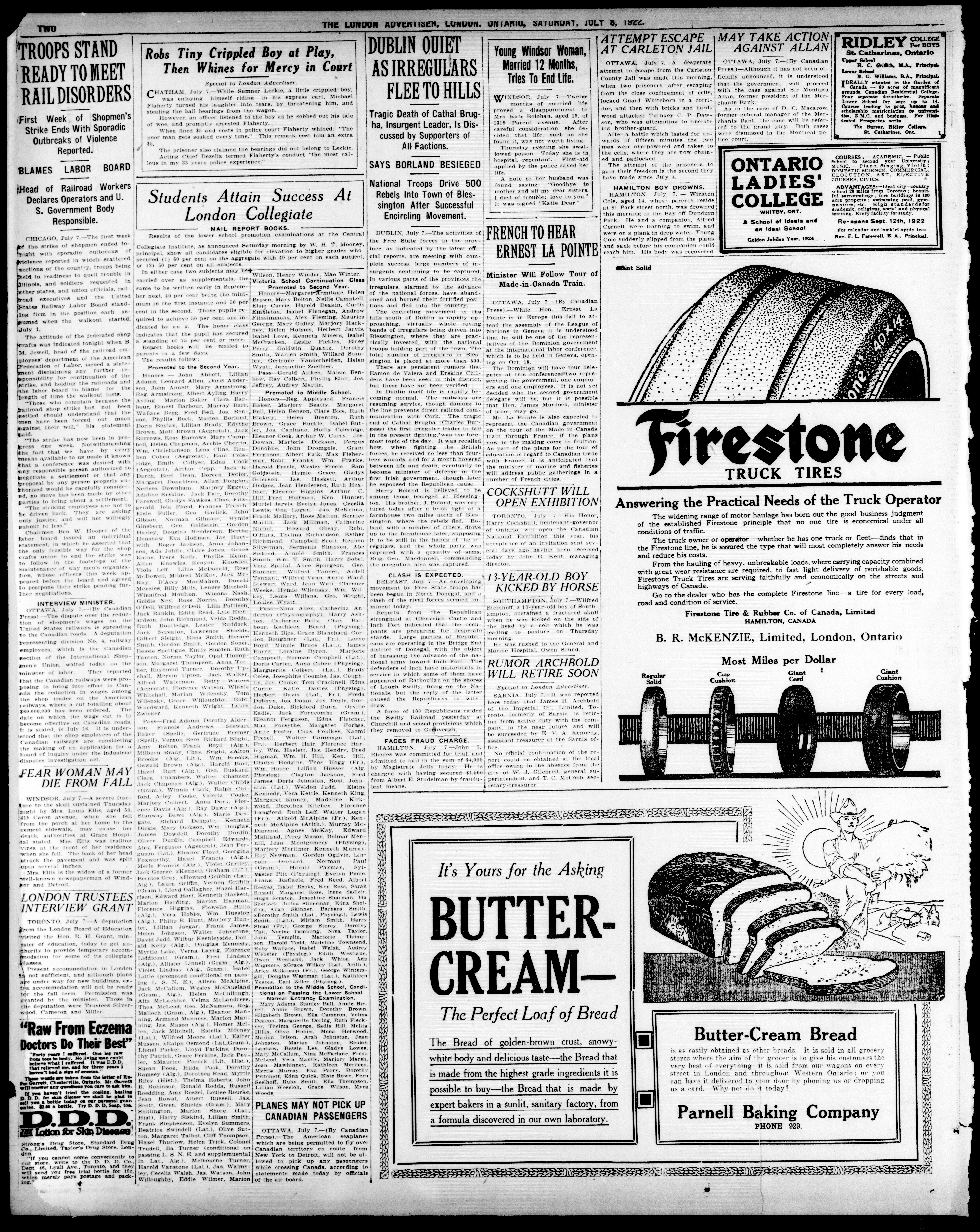 London advertiser. : The London Advertiser : 59th Year, No. 23383 (July 8, 1922)