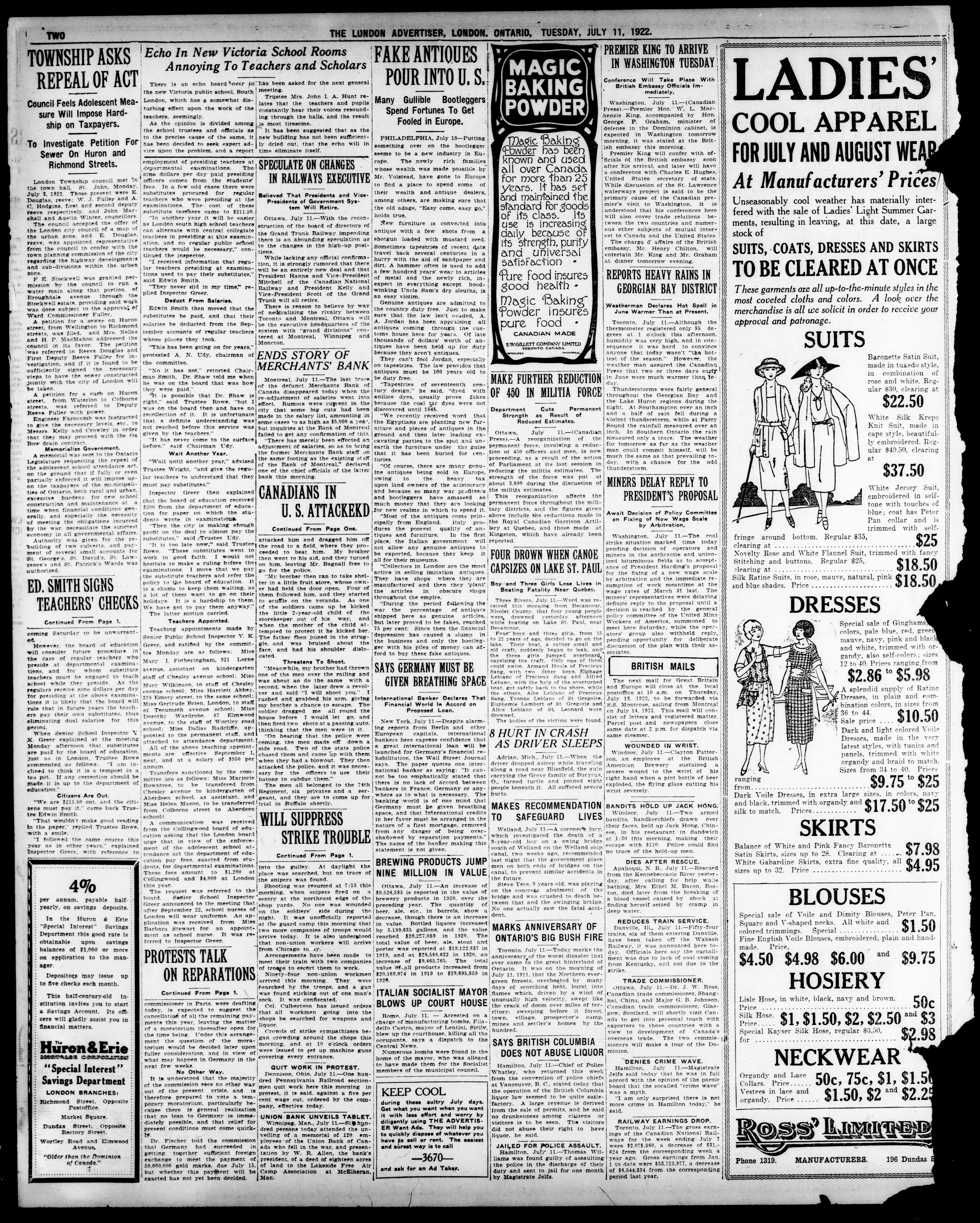 London advertiser. : The London Advertiser : 59th Year, No. 23385 (July 11, 1922)