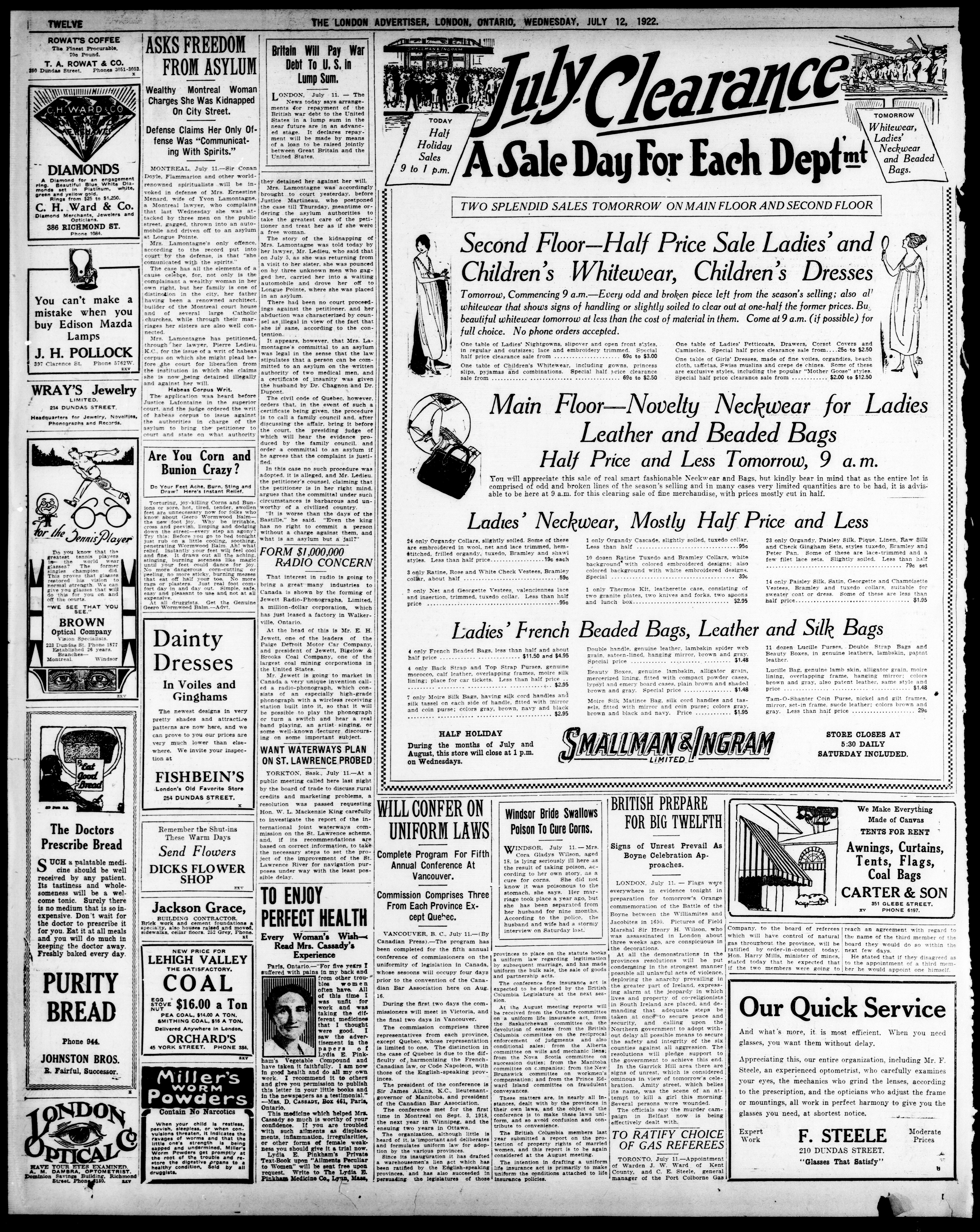- The London Advertiser : 59th Year, No. 23386 (July 12, 1922)