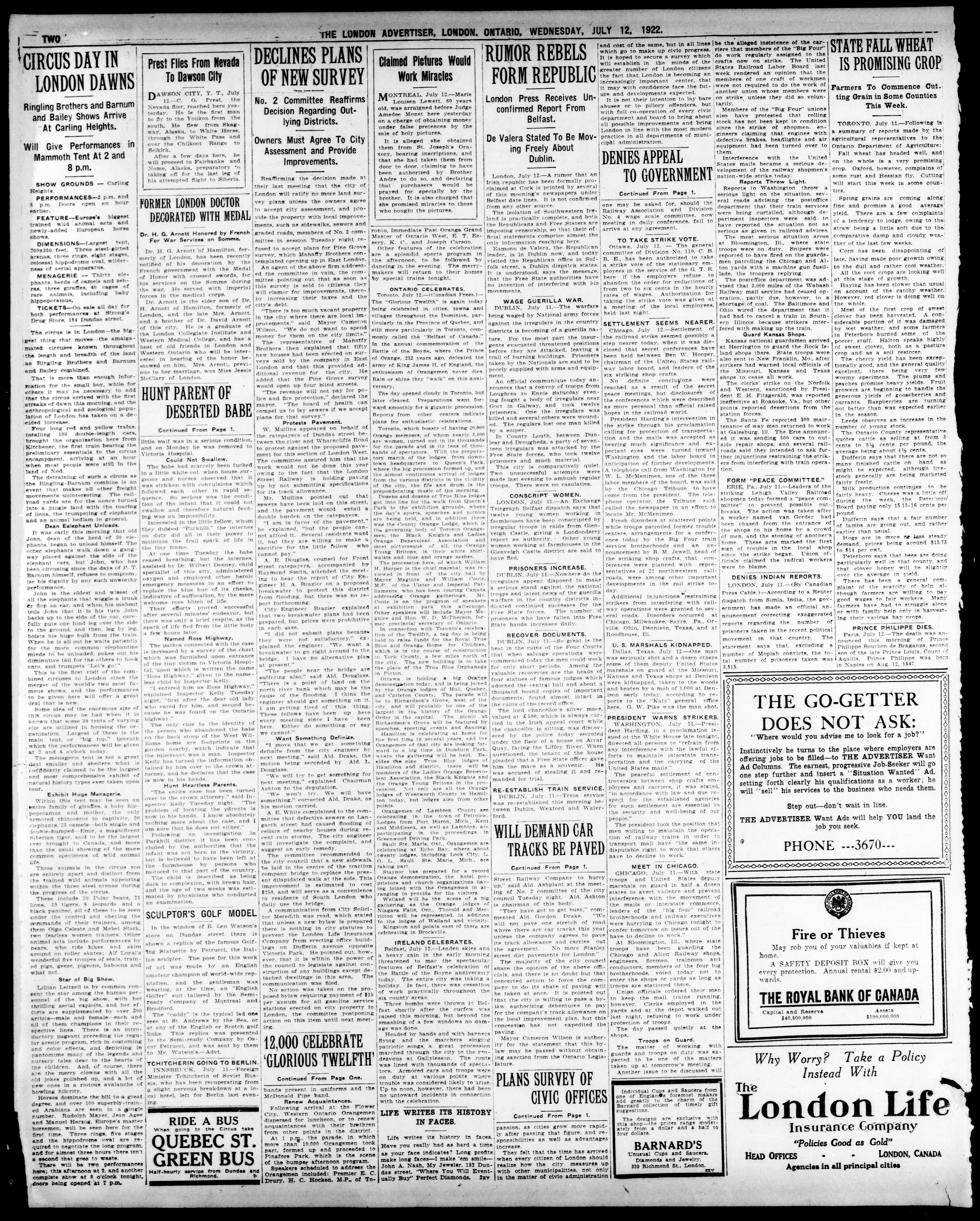 London advertiser. : The London Advertiser : 59th Year, No. 23386 (July 12, 1922)