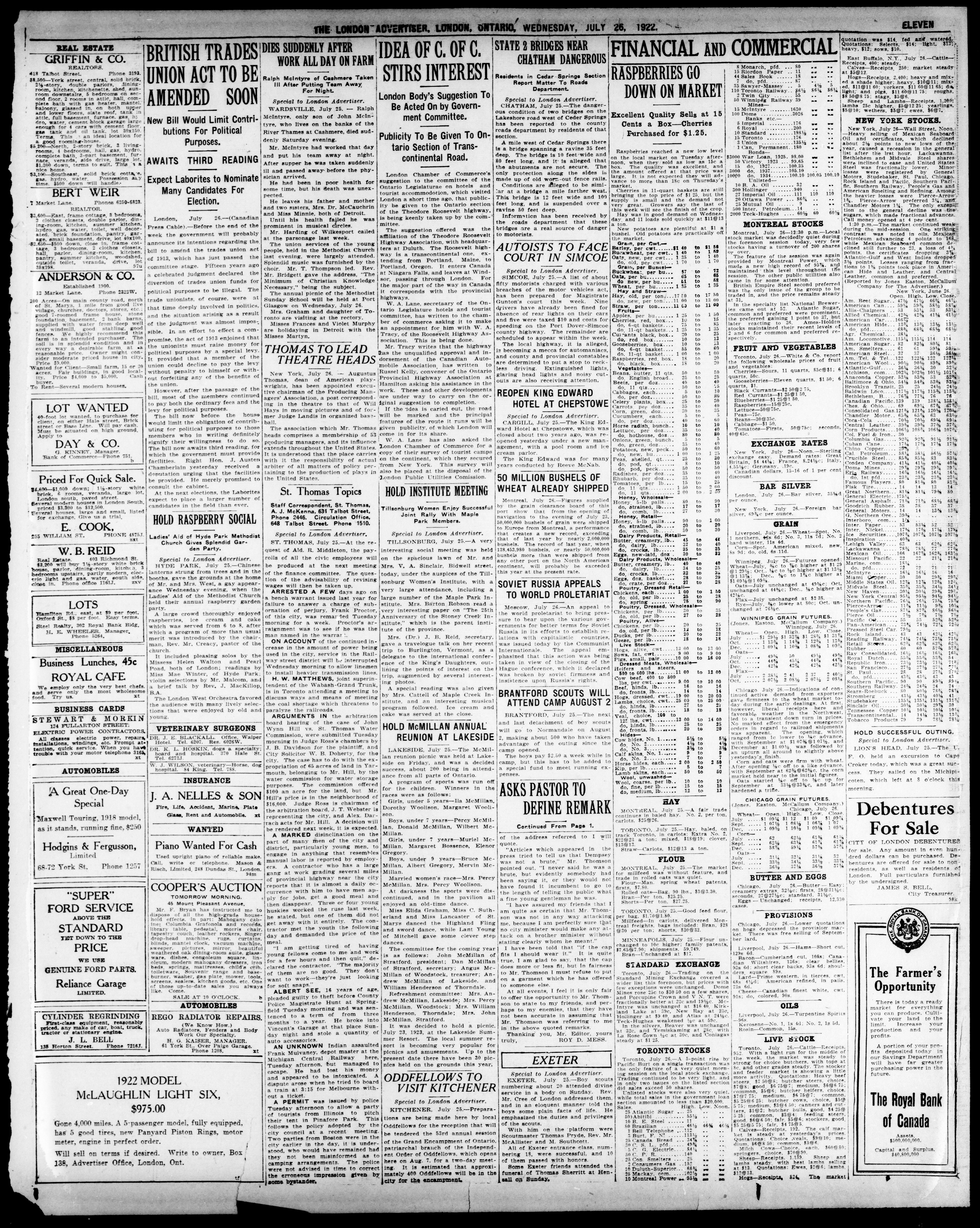 London advertiser. : The London Advertiser : 59th Year, No.23398 (July 26, 1922)