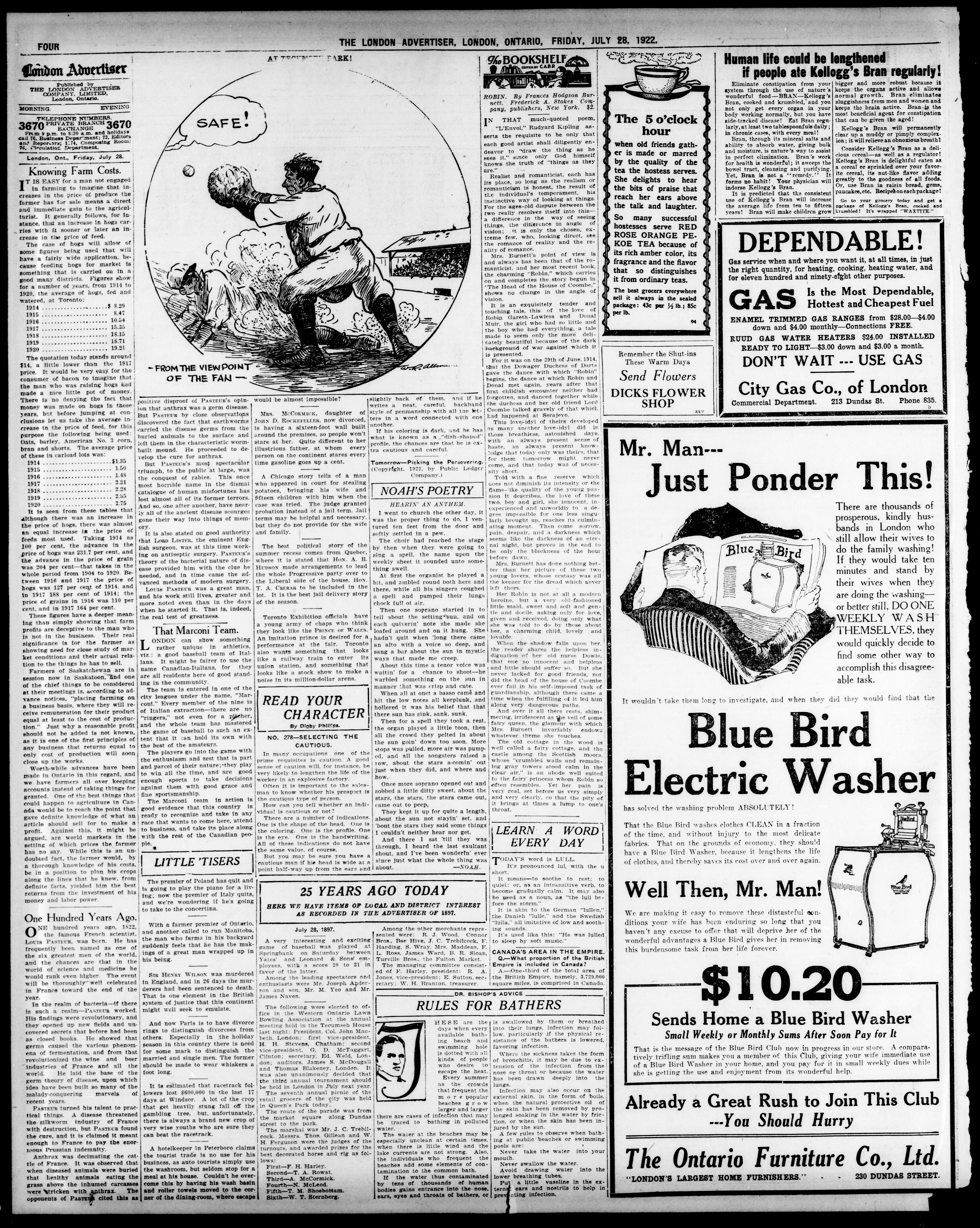 London advertiser. : The London Advertiser : 59th Year, No.23400 (July 28, 1922)