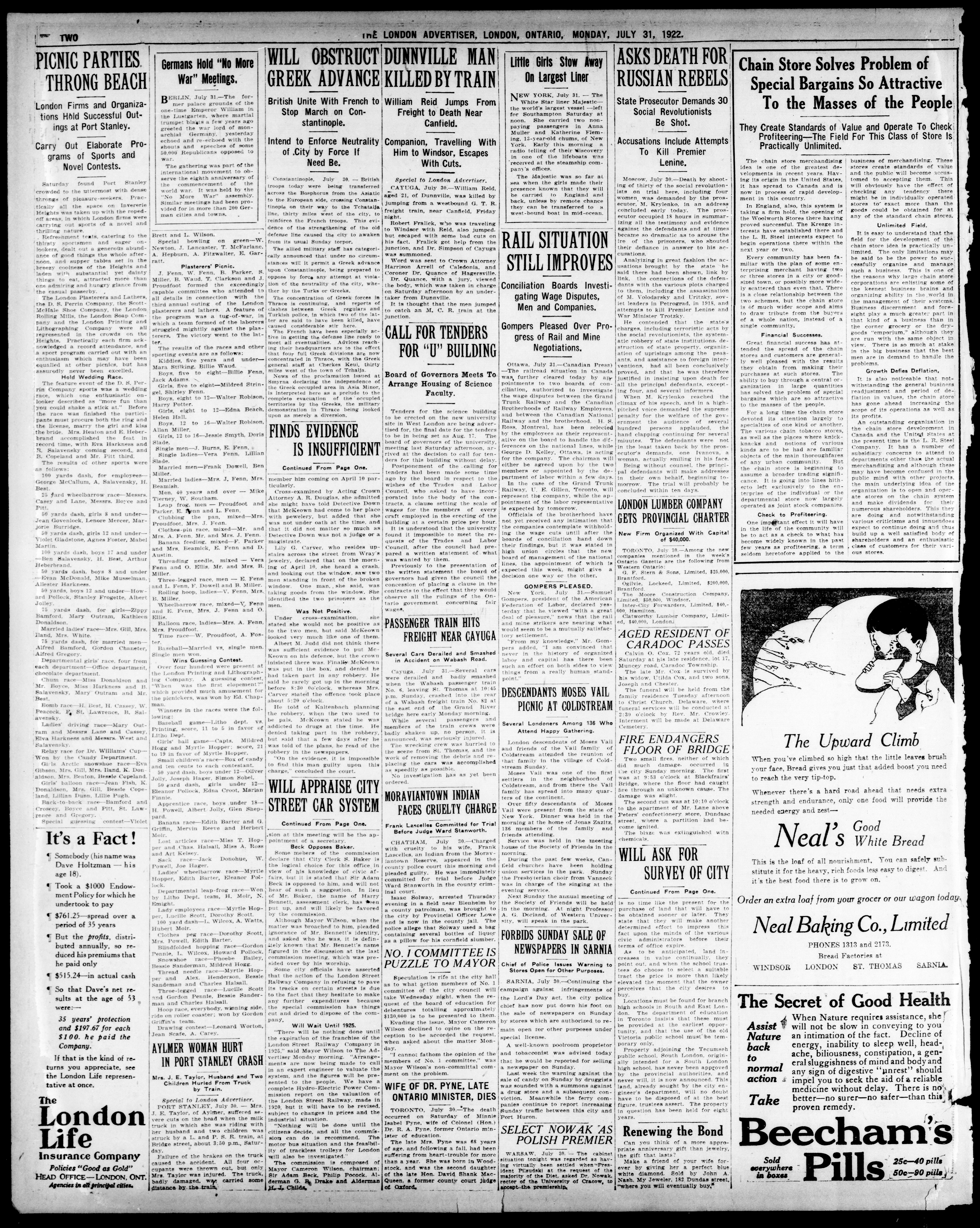 London advertiser. : The London Advertiser : 59th Year, No.23402 (July 31, 1922)