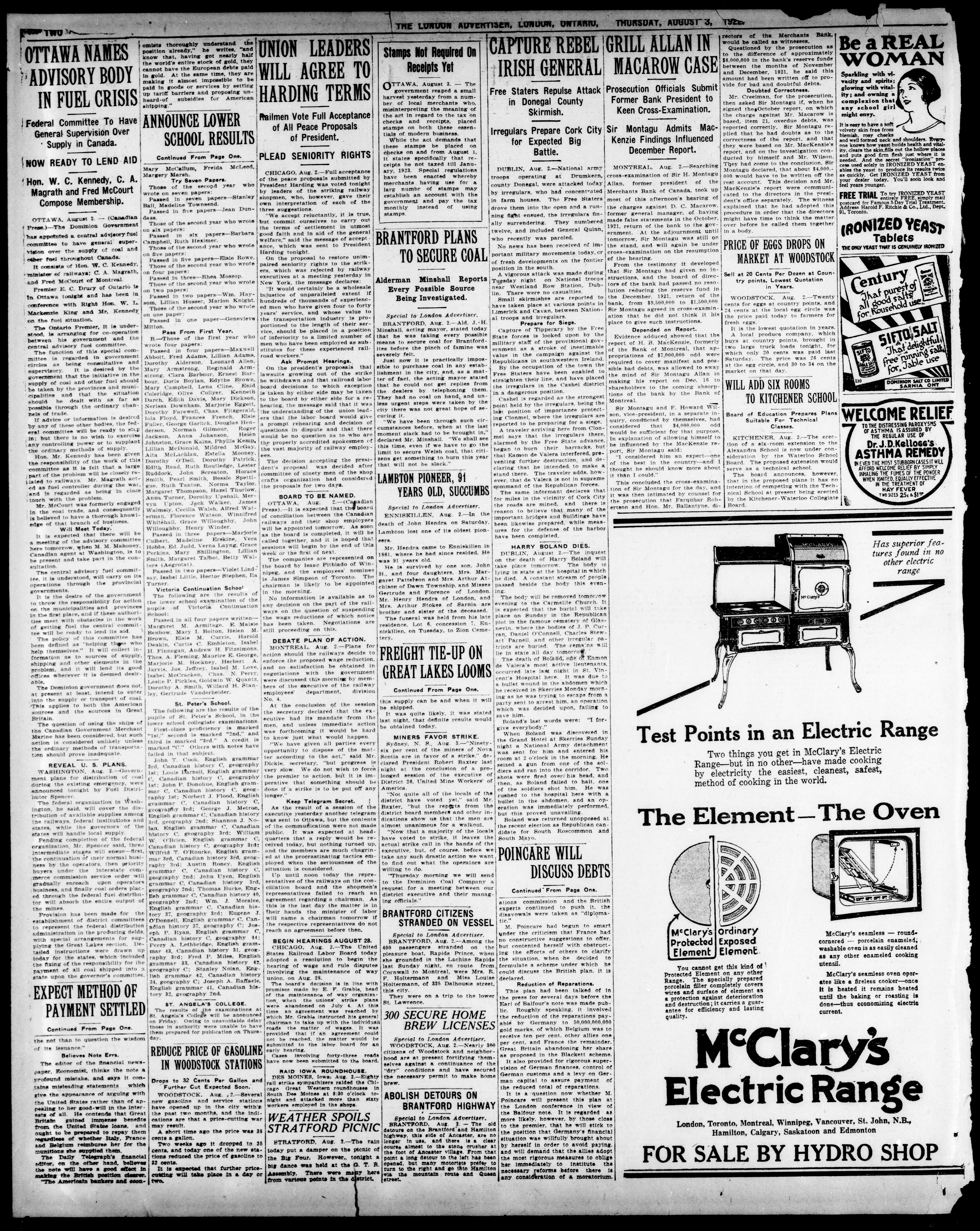 London advertiser. : The London Advertiser : 59th Year, No. 23405 (August 3, 1922)