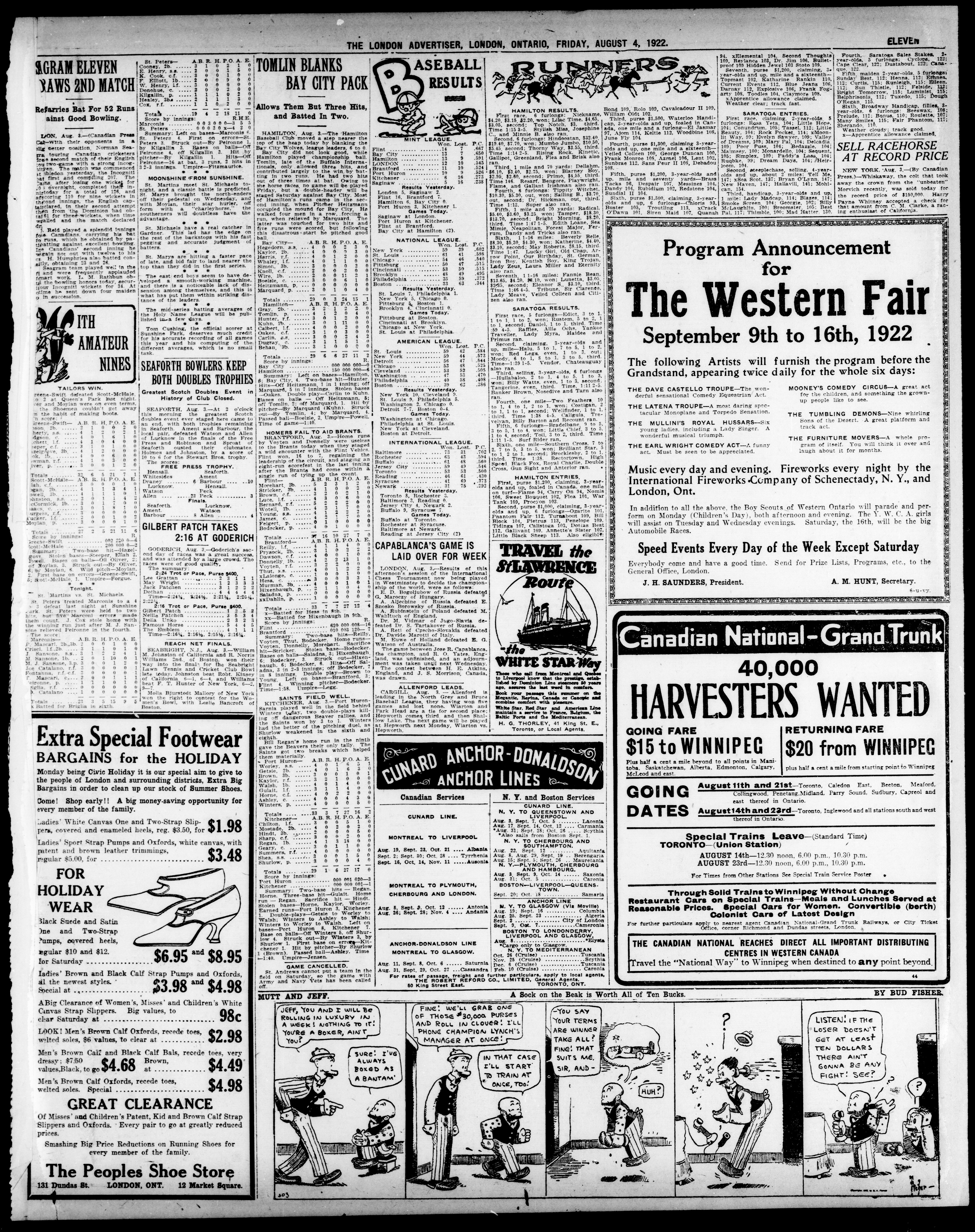 London advertiser. : The London Advertiser : 59th Year, No.23406 (August 4, 1922)