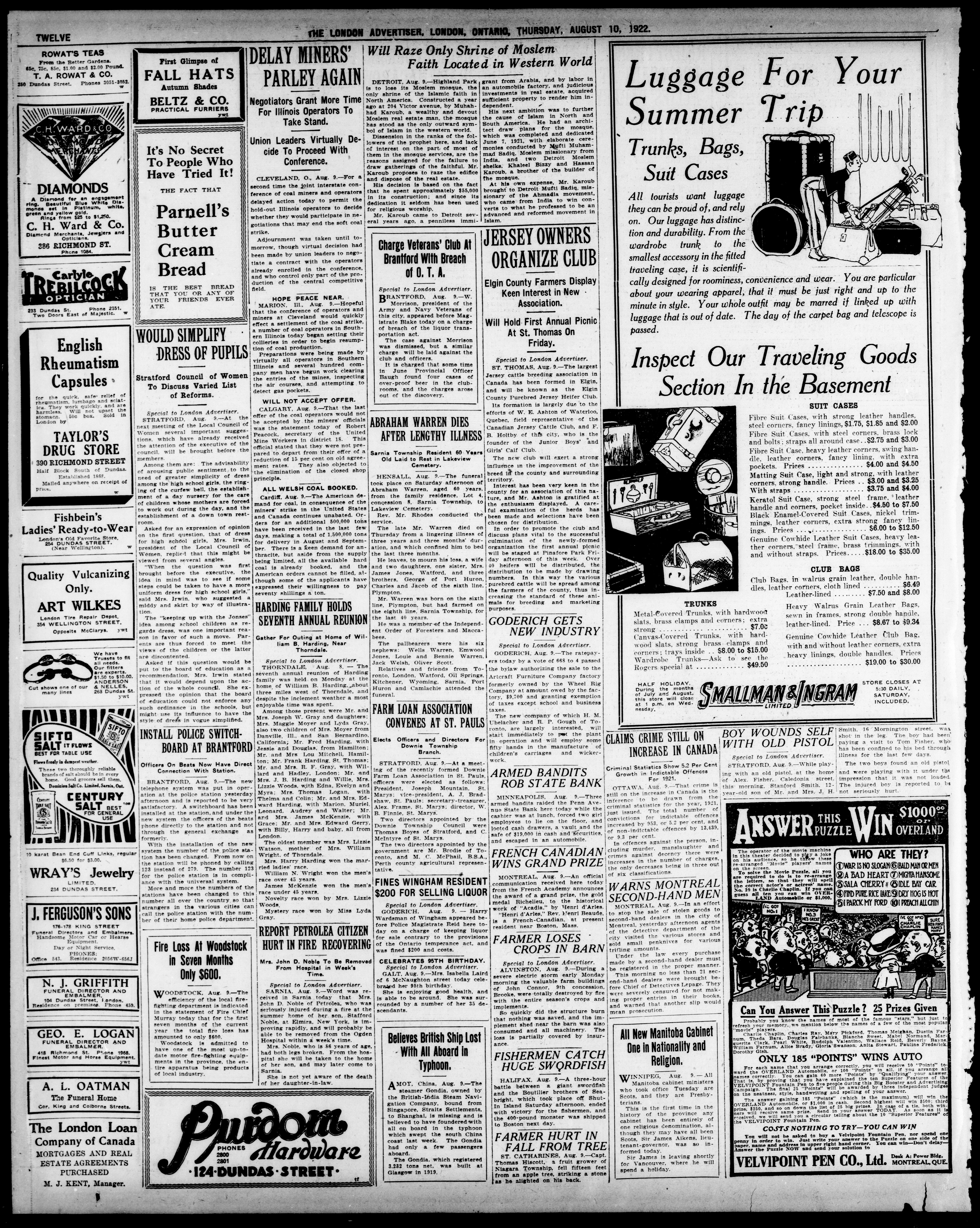 London advertiser. : The London Advertiser : 59th Year, No.23411 (August 10, 1922)