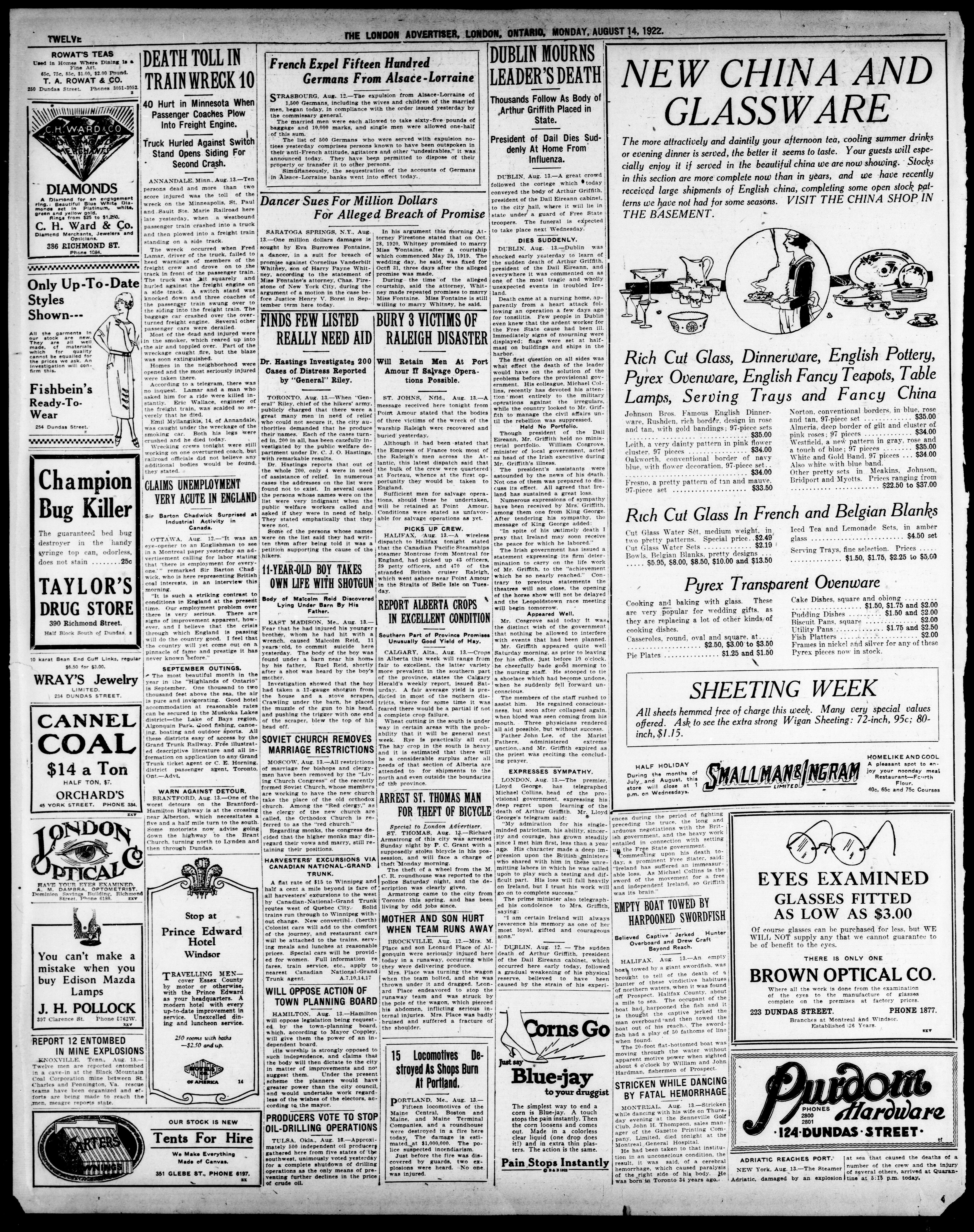 London advertiser. : The London Advertiser : 59th Year, No.23414 (August 14, 1922)