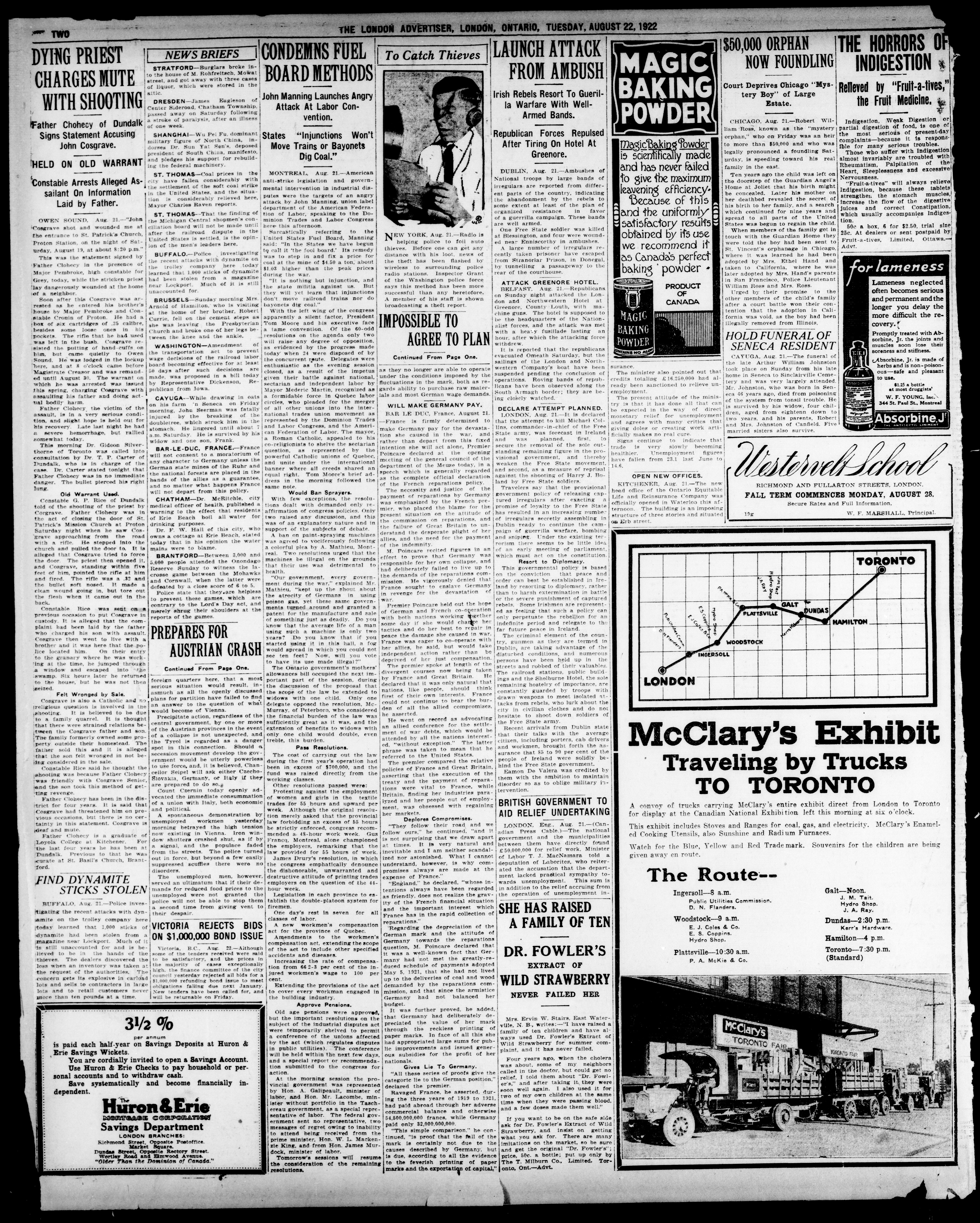 London advertiser. : The London Advertiser : 59th Year, No. 23421 (August 22, 1922)