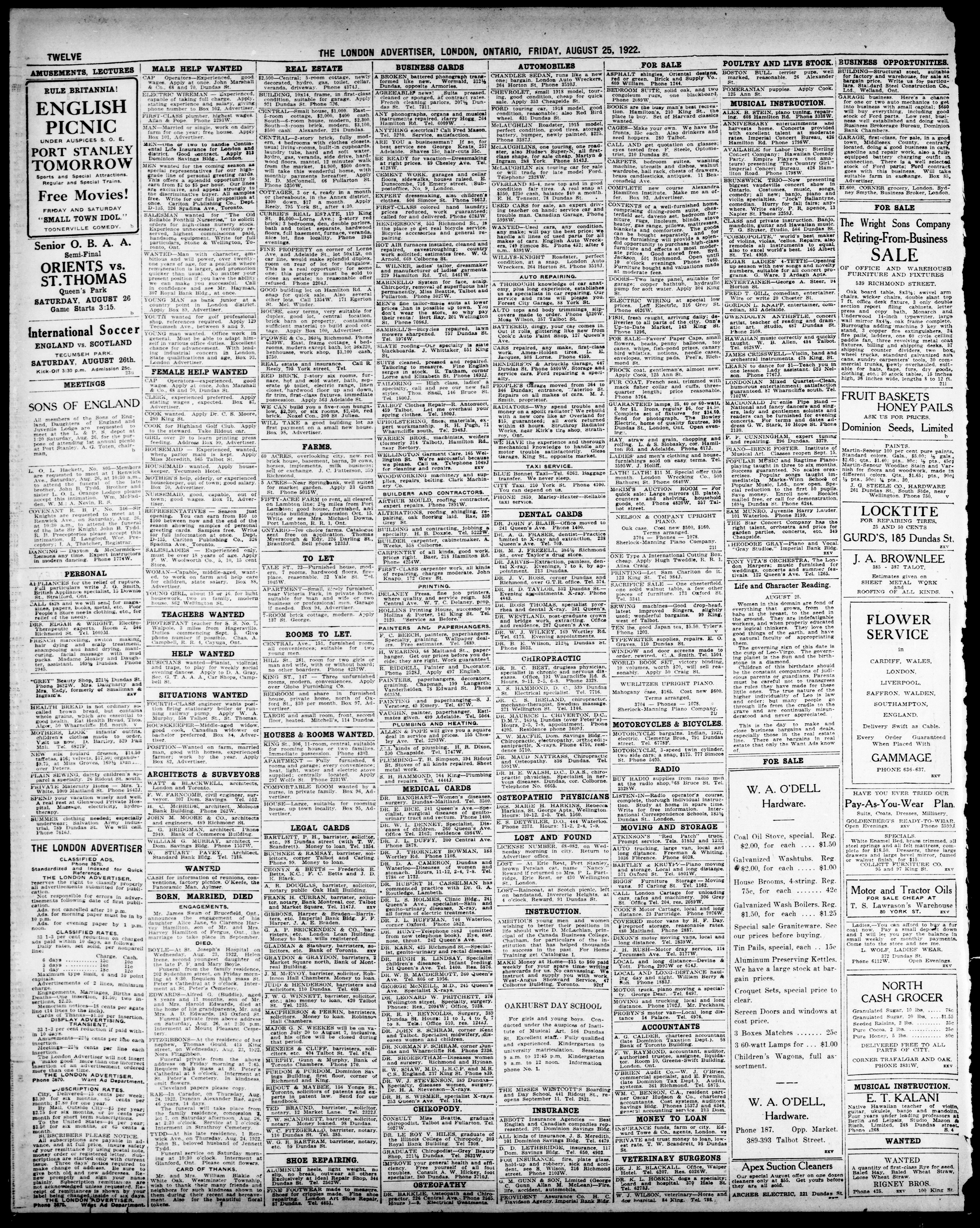 London advertiser. : The London Advertiser : 59th Year, No. 23424 (August 25, 1922)