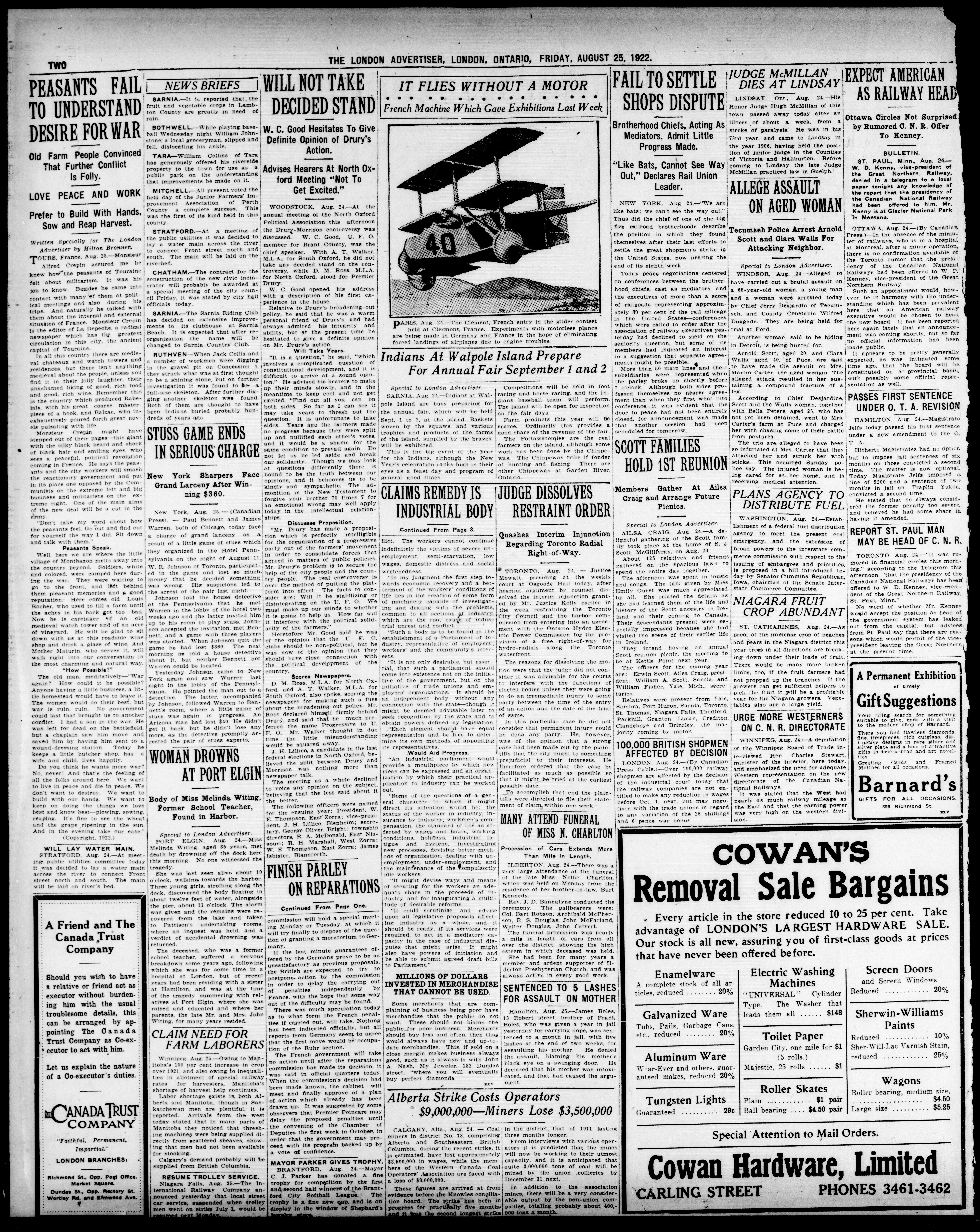 - The London Advertiser : 59th Year, No. 23424 (August 25, 1922)