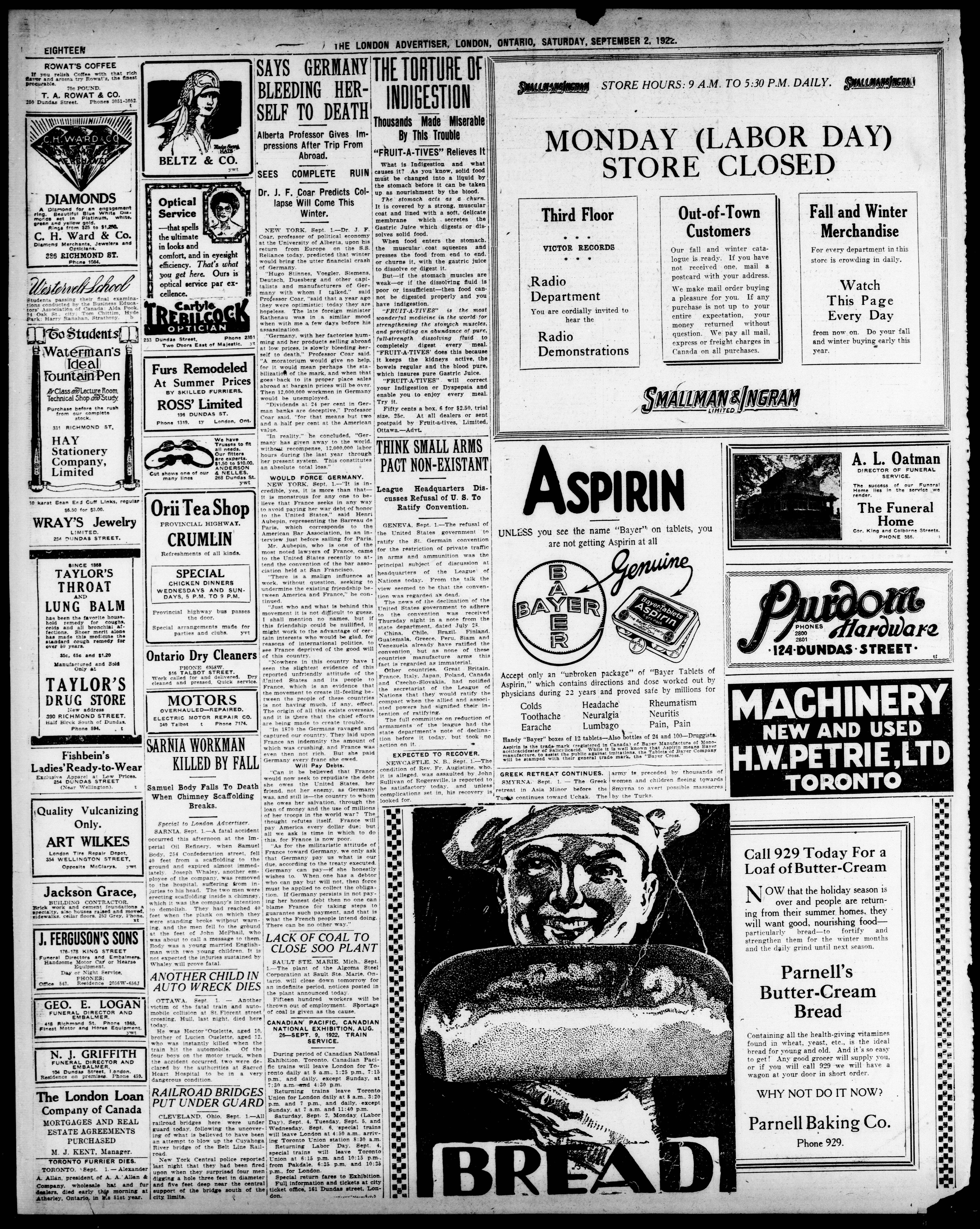London advertiser. : The London Advertiser : 59th Year, No. 23431 (September 2, 1922)