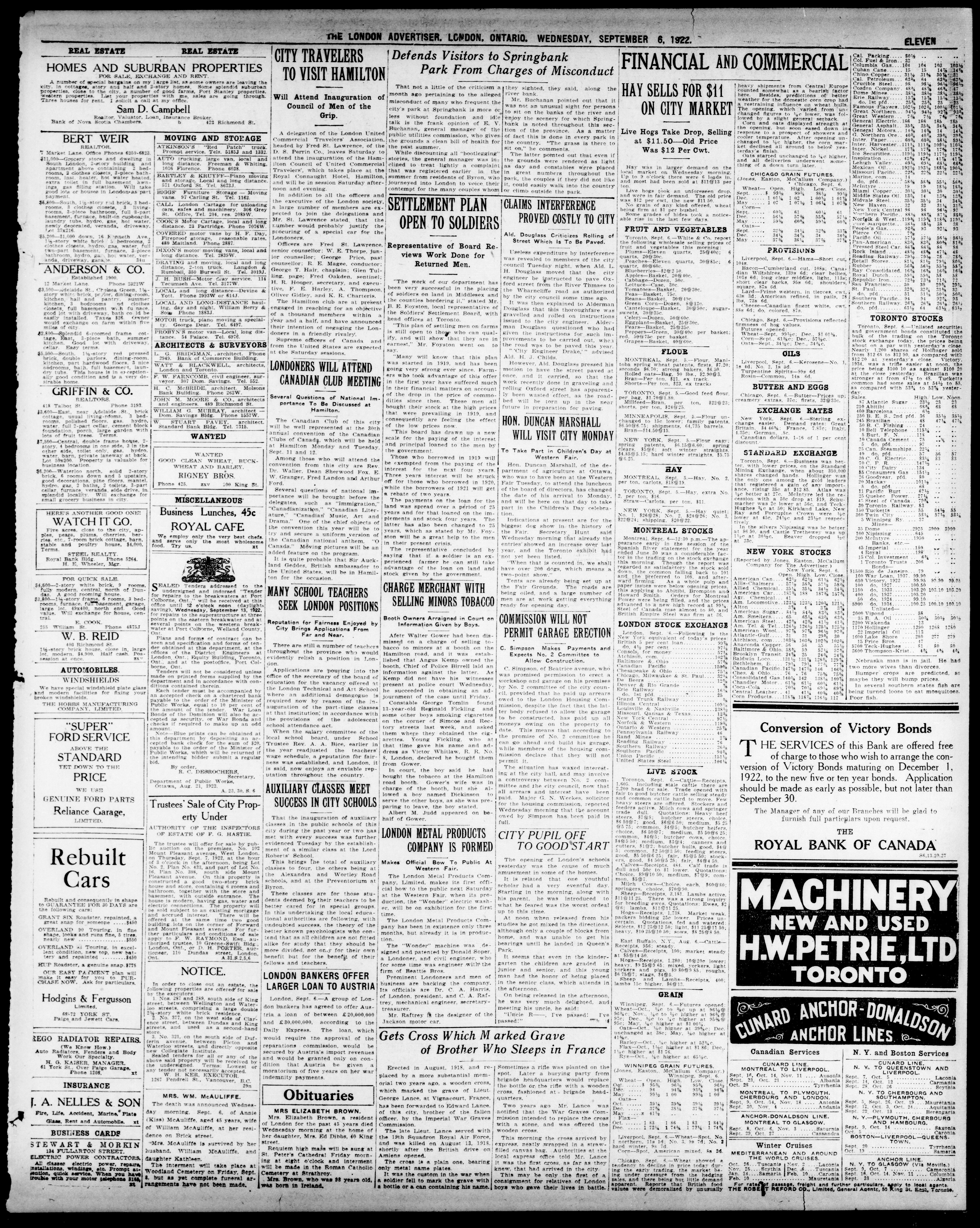 London advertiser. : The London Advertiser : 59th Year, No. 23434 (September 6, 1922)