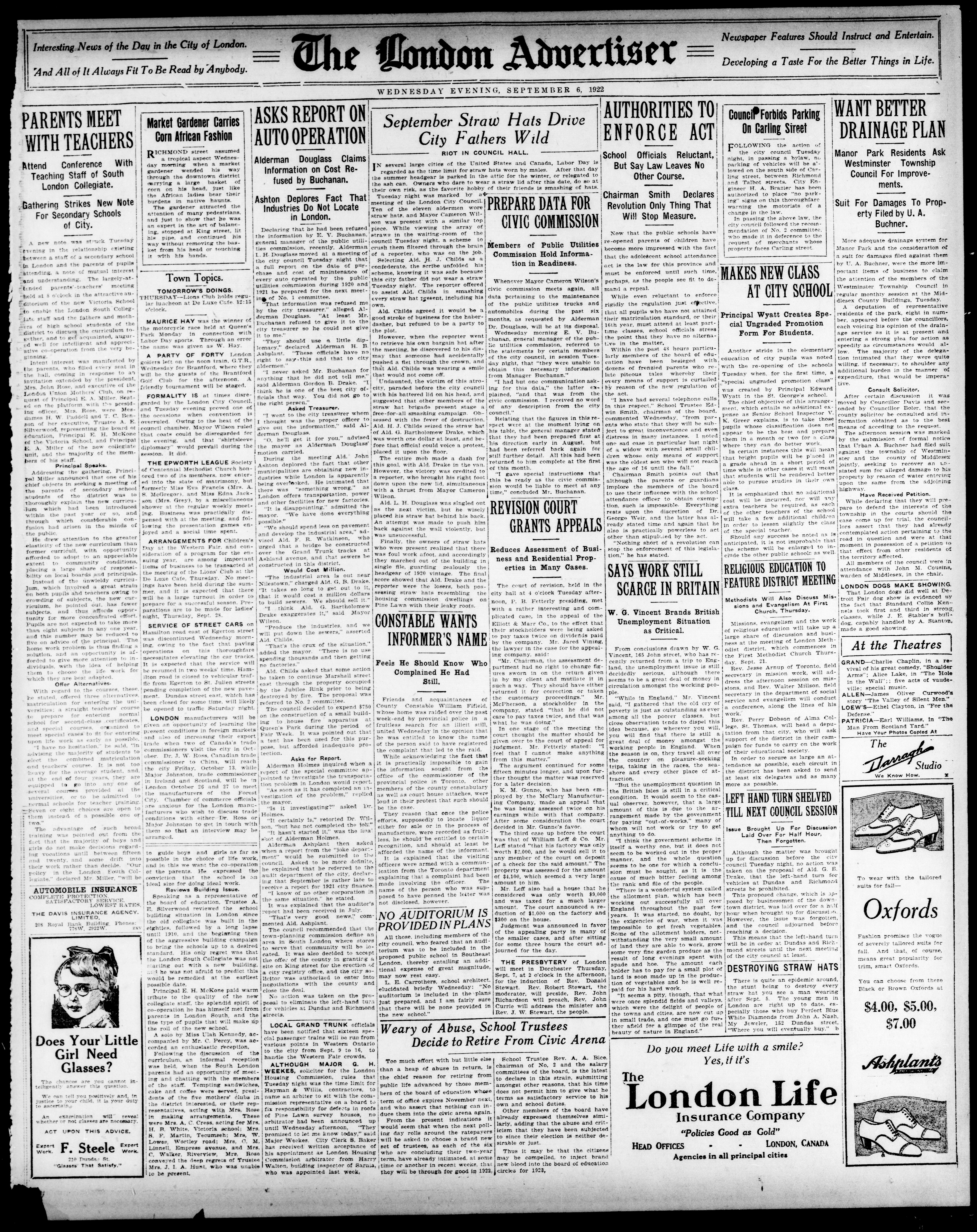 London advertiser. : The London Advertiser : 59th Year, No. 23434 (September 6, 1922)