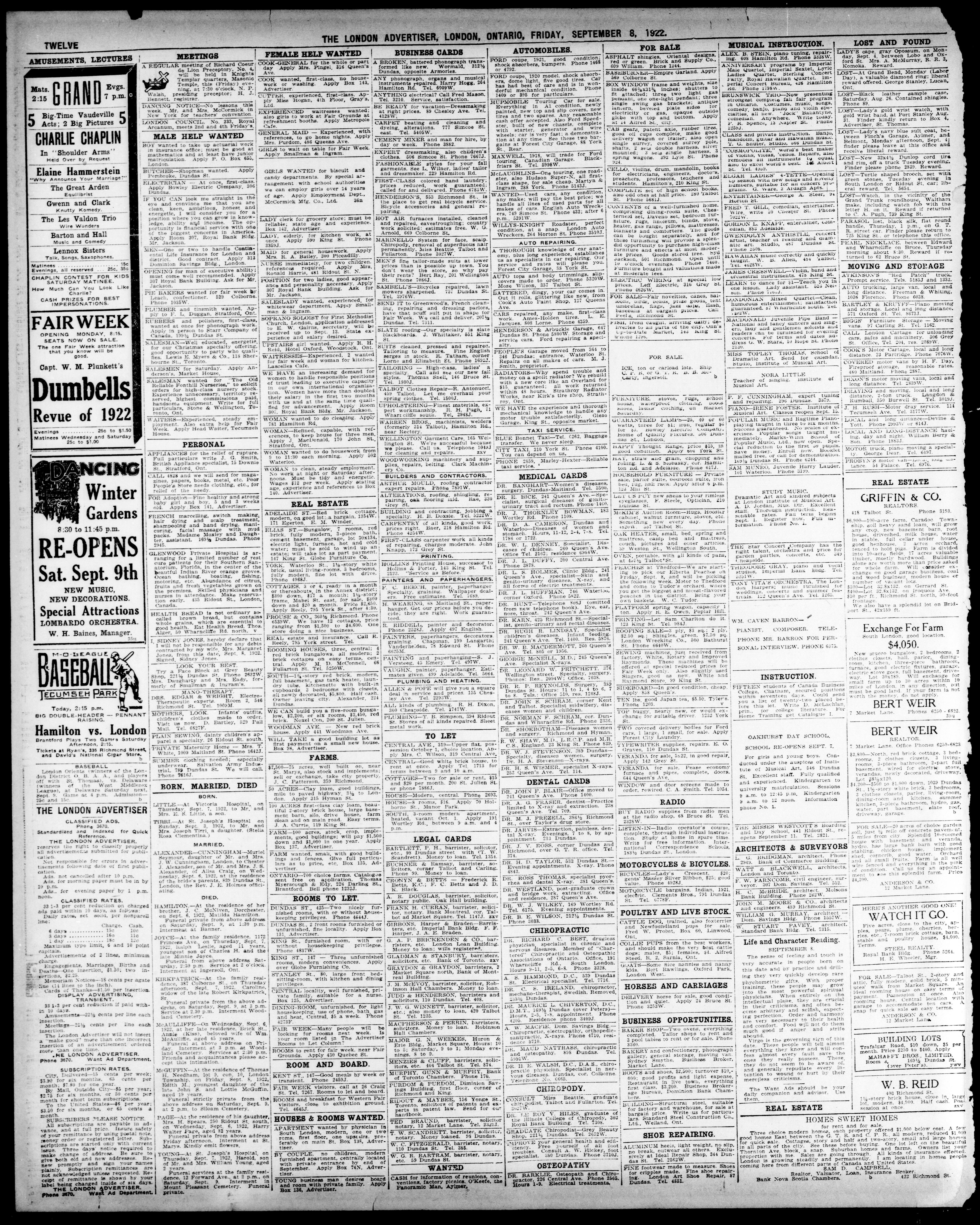 London advertiser. : The London Advertiser : 59th Year, No. 23436 (September 8, 1922)