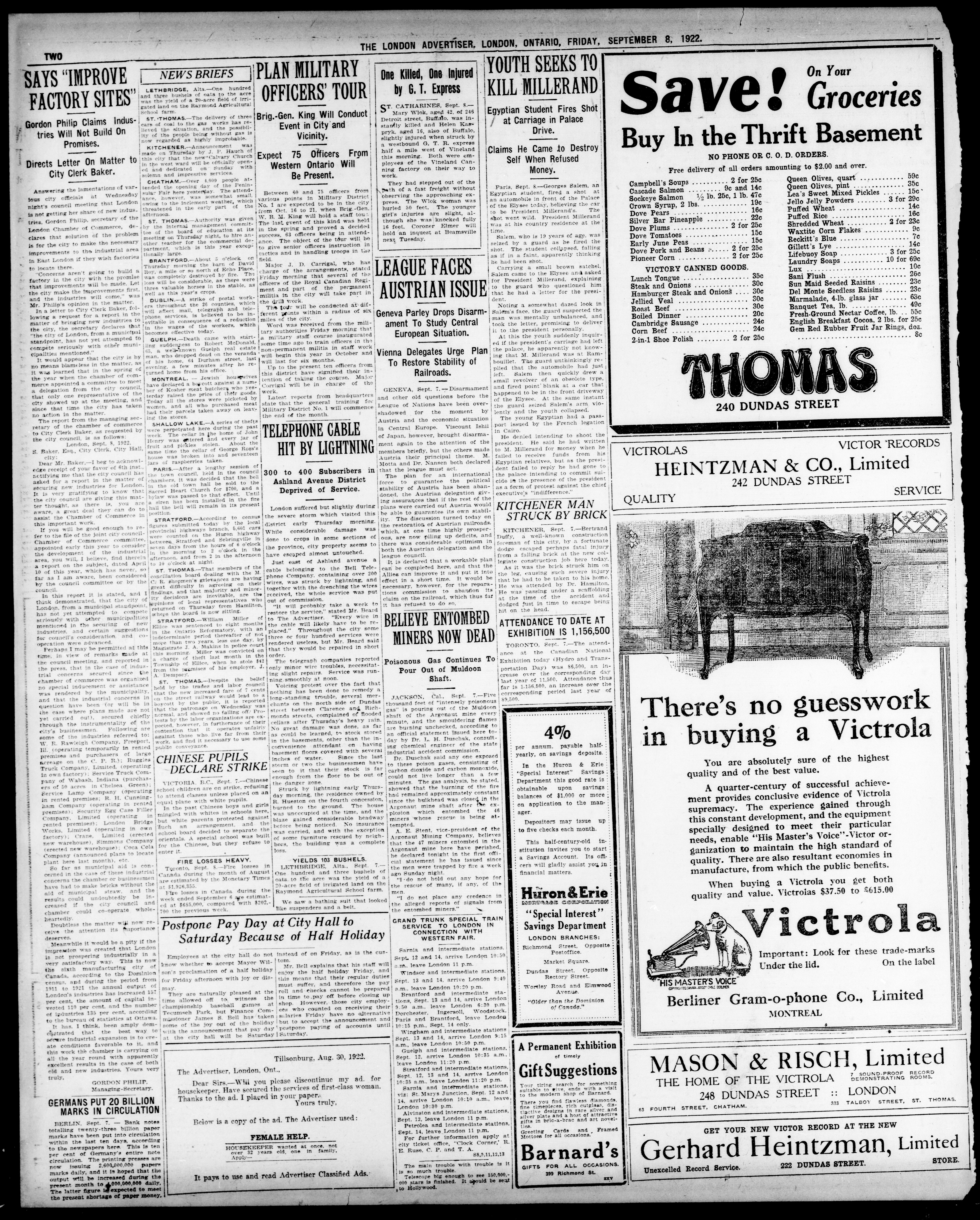 London advertiser. : The London Advertiser : 59th Year, No. 23436 (September 8, 1922)