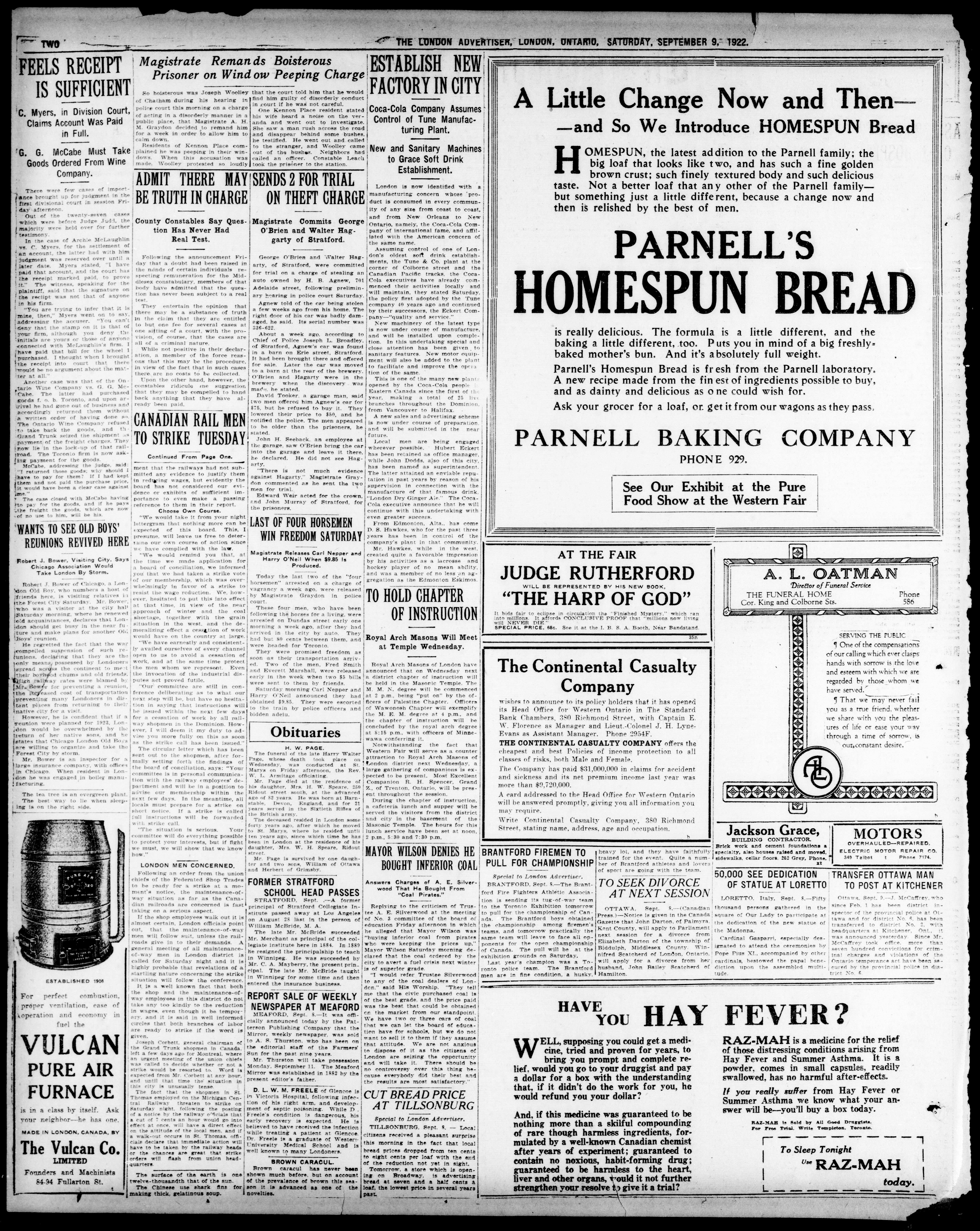 - The London Advertiser : 59th Year, No. 23437 (September 9, 1922)