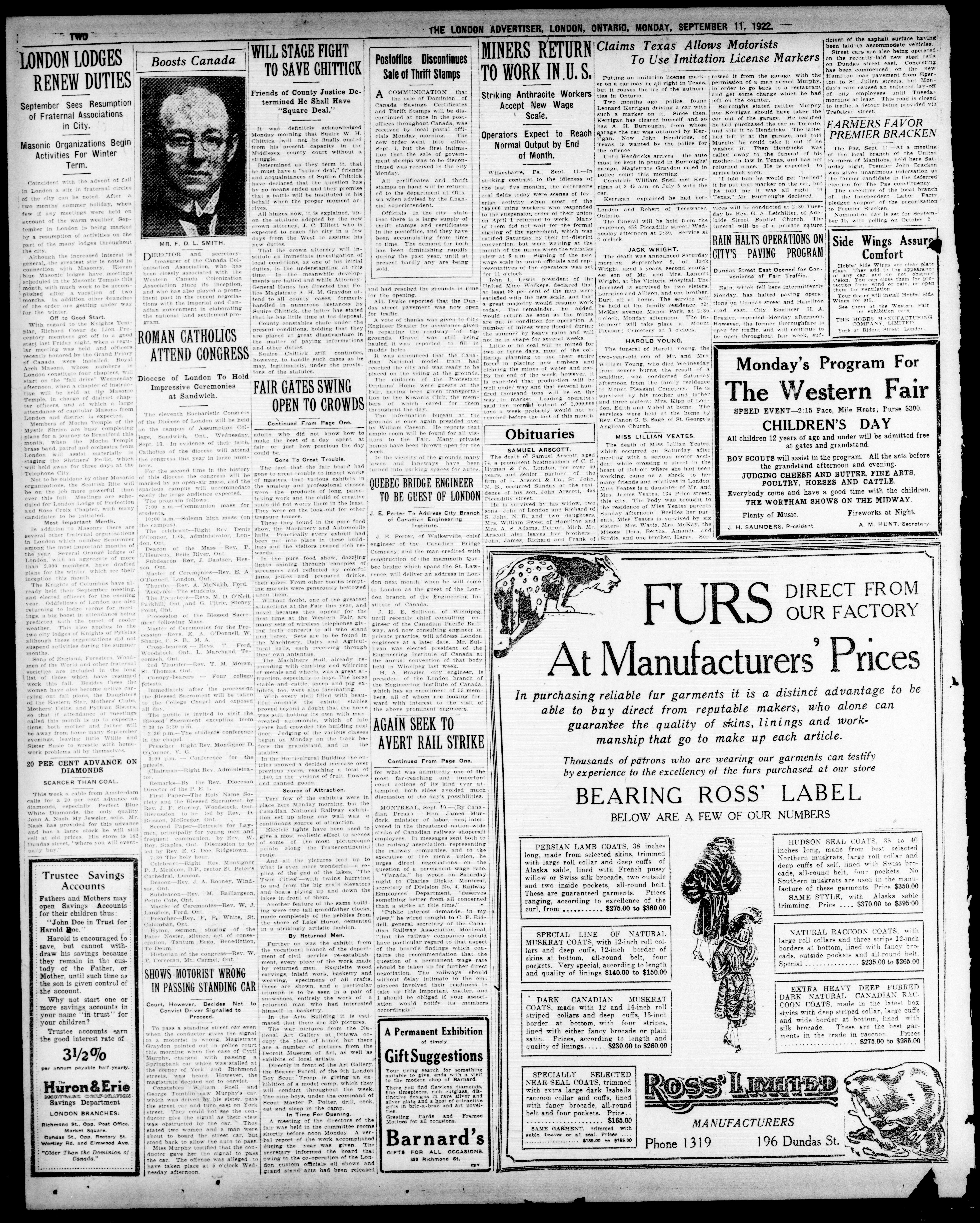 - The London Advertiser : 59th Year, No. 23438 (September 11, 1922)