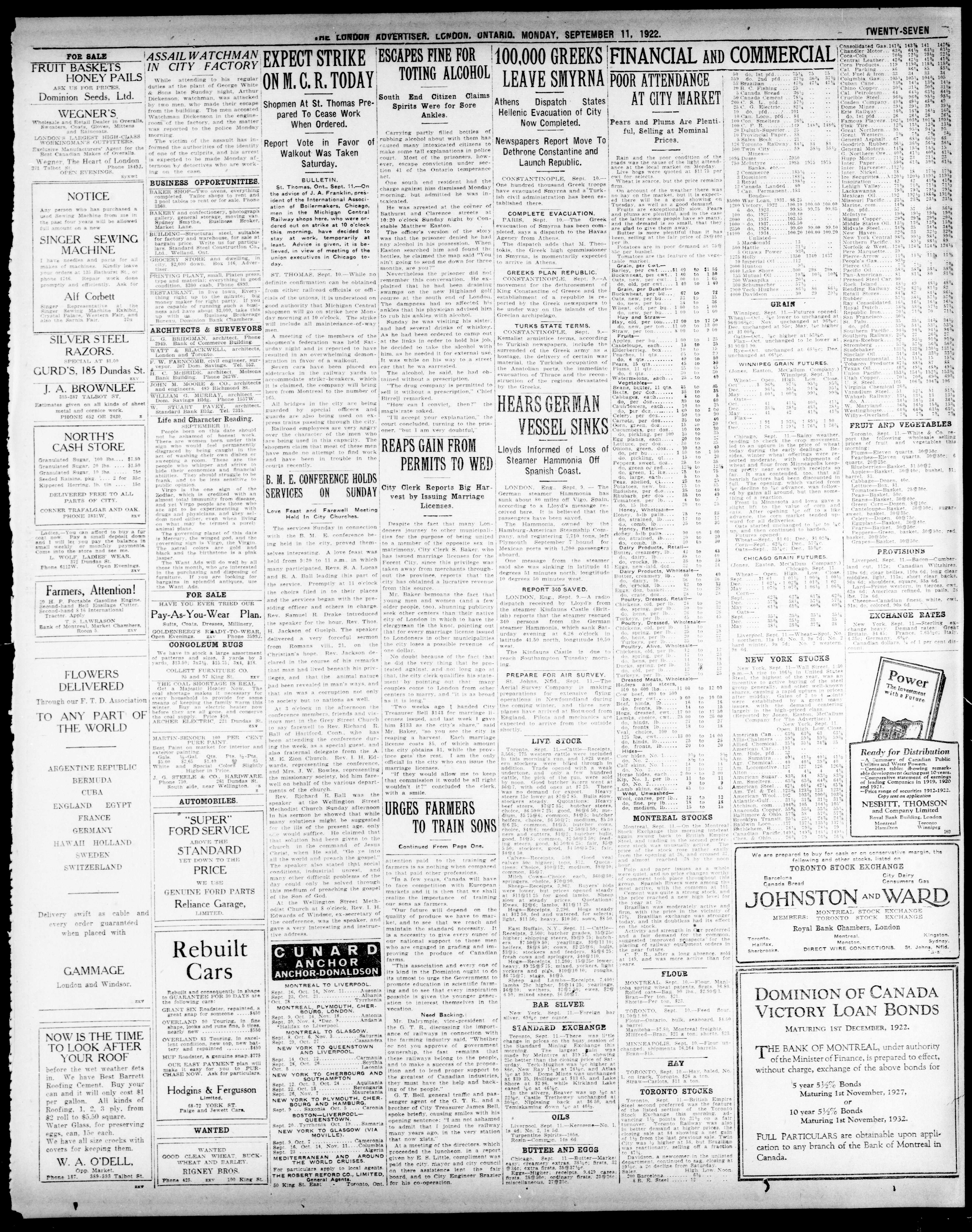 - The London Advertiser : 59th Year, No. 23438 (September 11, 1922)