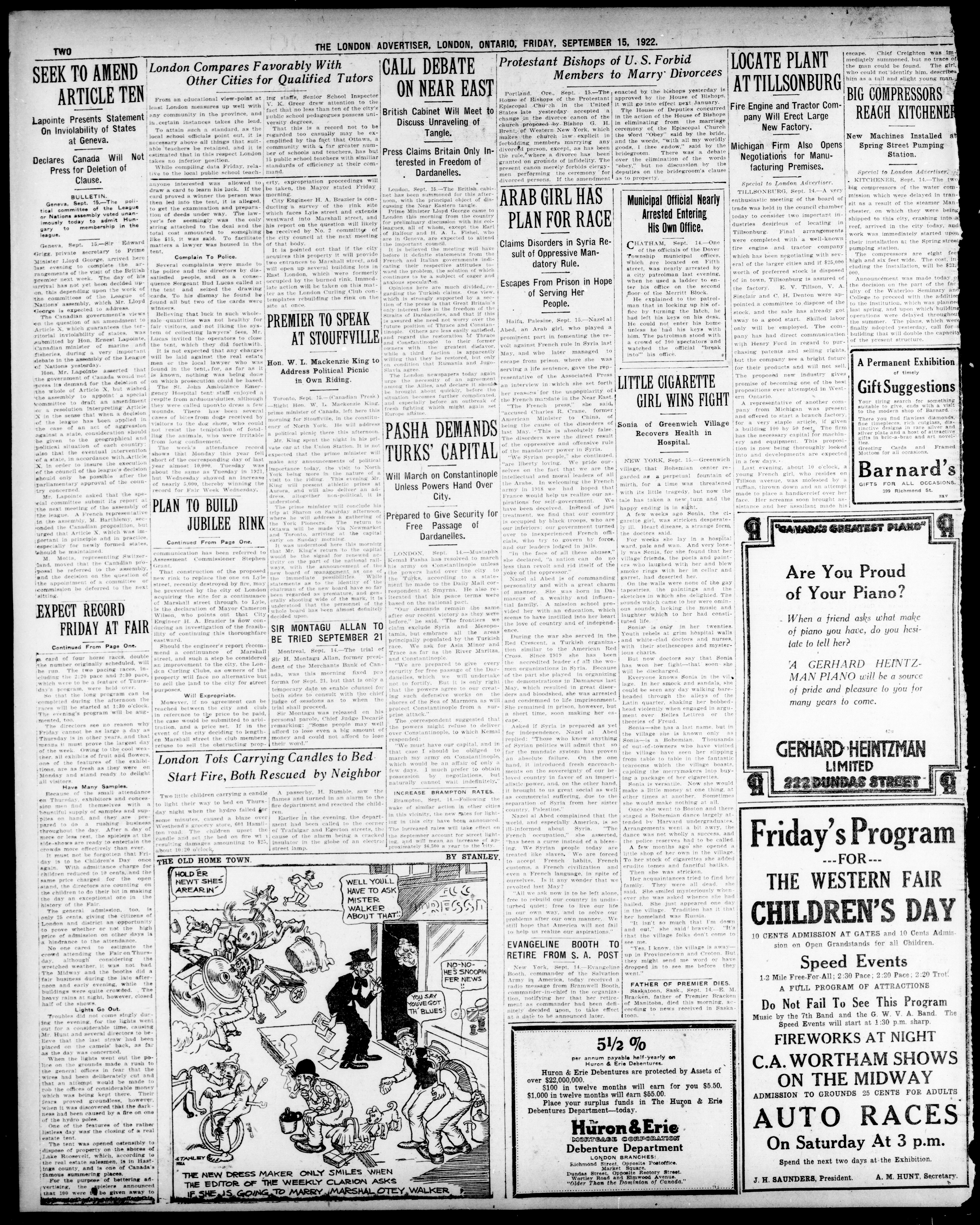 London advertiser. : The London Advertiser : 59th Year, No. 23442 (September 15, 1922)