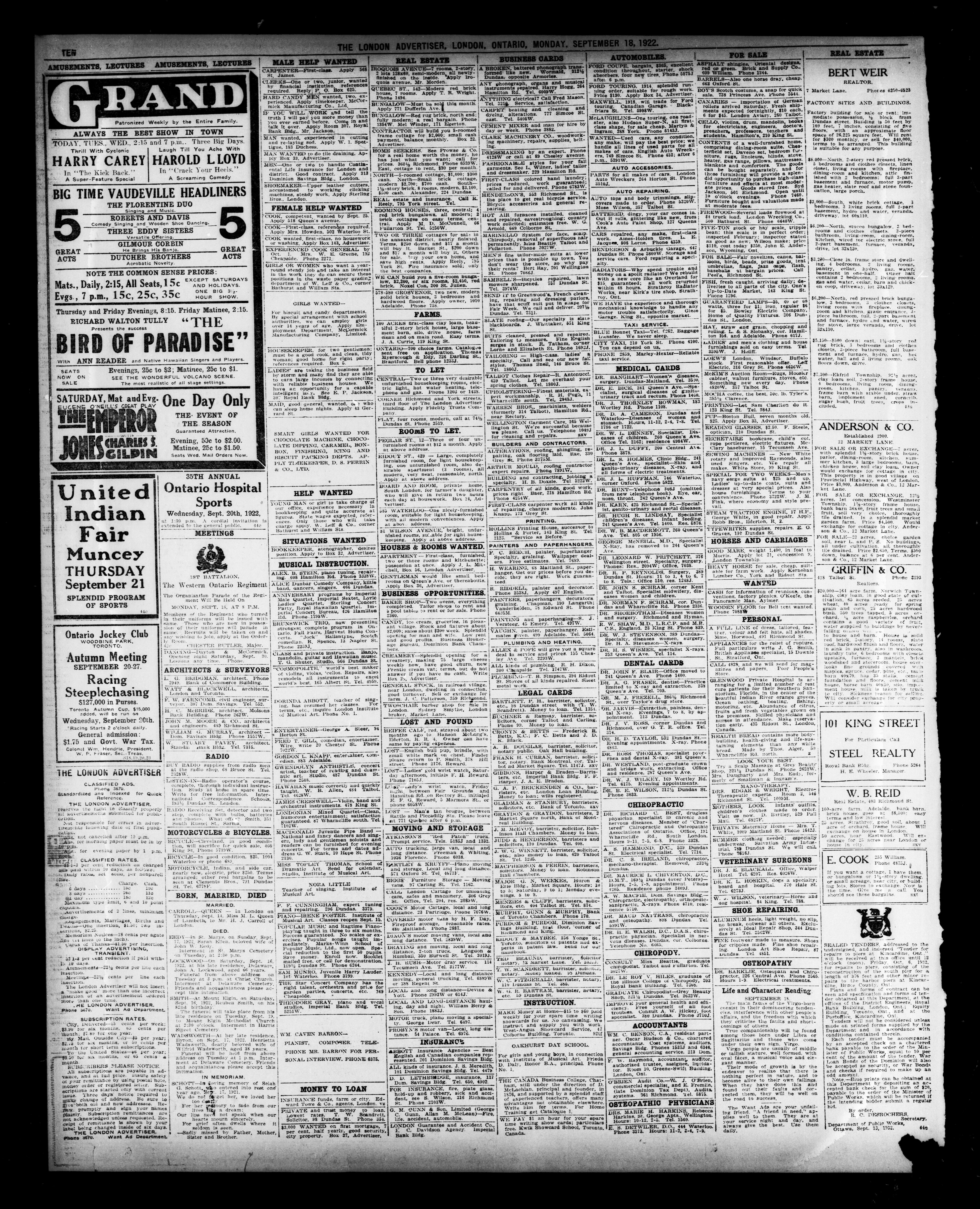 London advertiser. : The London Advertiser : 59th Year, No. 23444 (September 18, 1922)