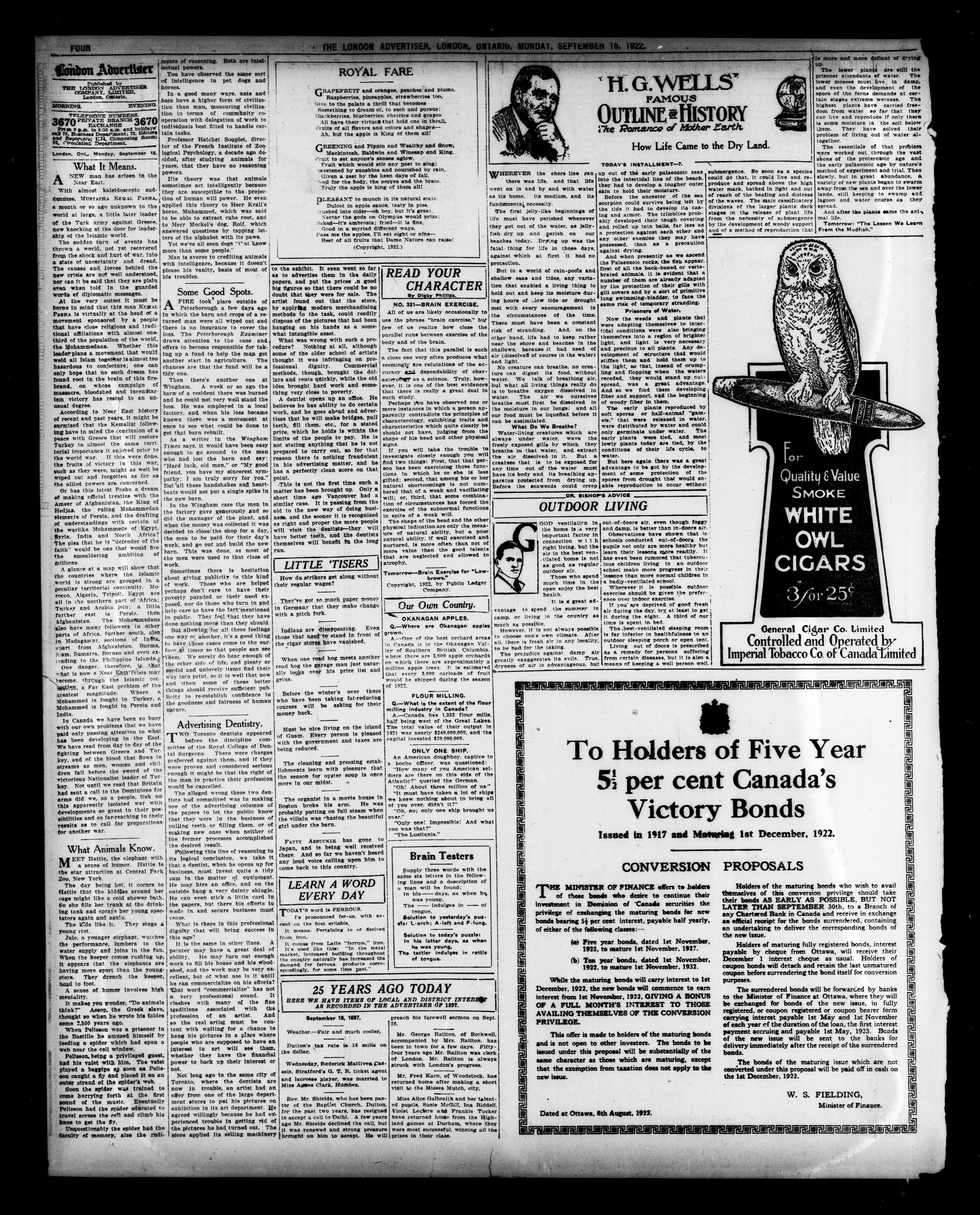 - The London Advertiser : 59th Year, No. 23444 (September 18, 1922)