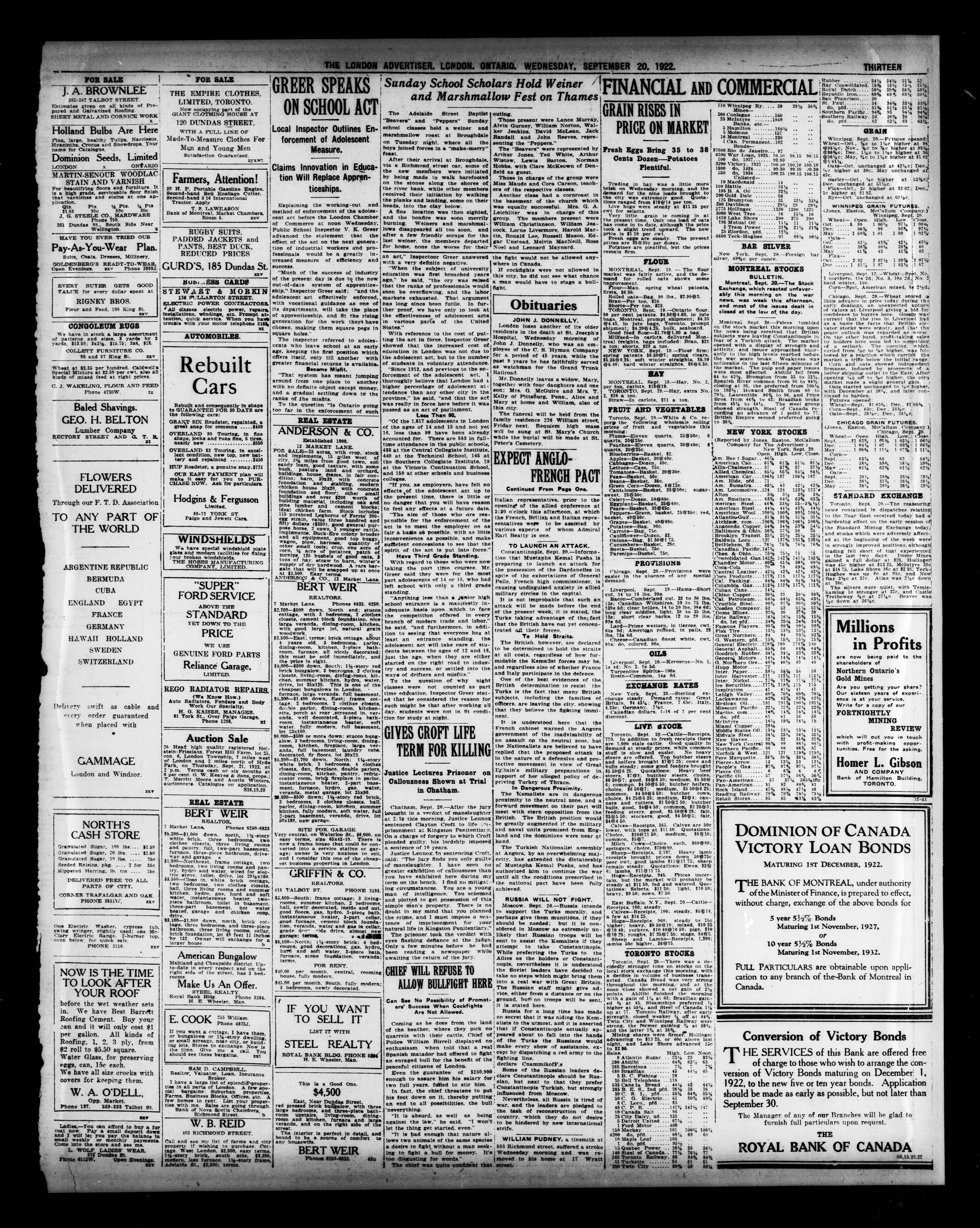 - The London Advertiser : 59th Year, No. 23446 (September 20, 1922)