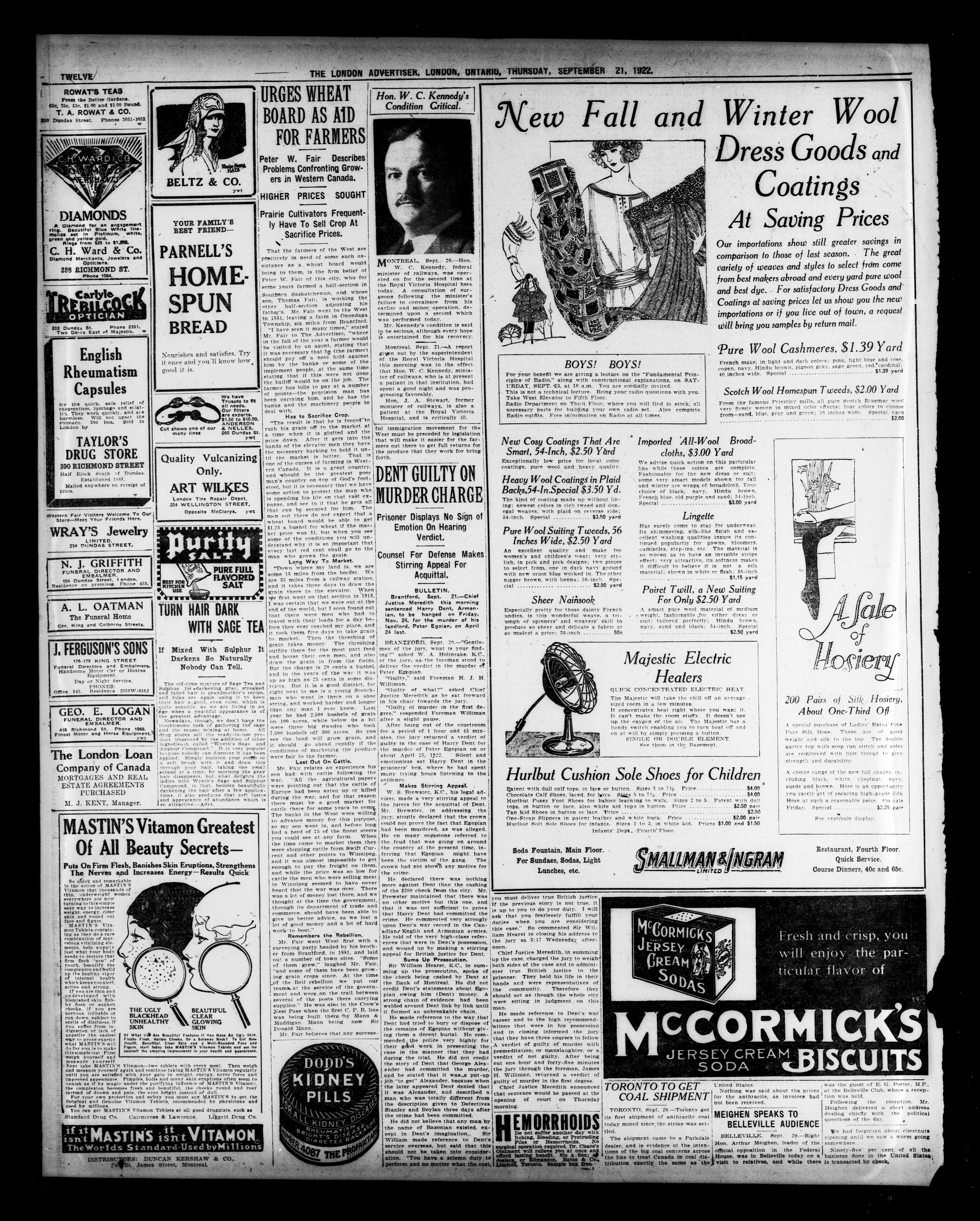 - The London Advertiser : 59th Year, No. 23447 (September 21, 1922)