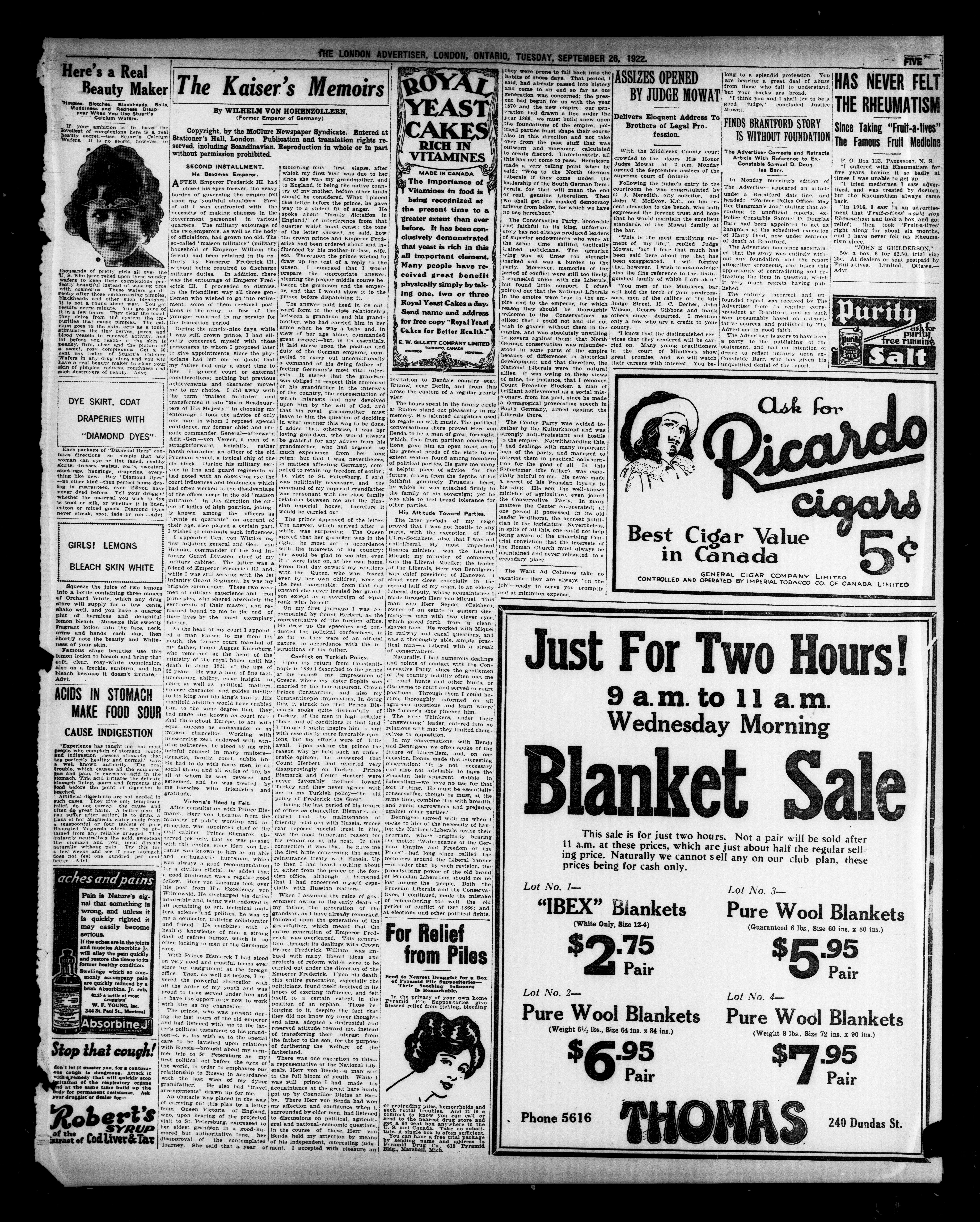 - The London Advertiser : 59th Year, No. 23451 (September 26, 1922)