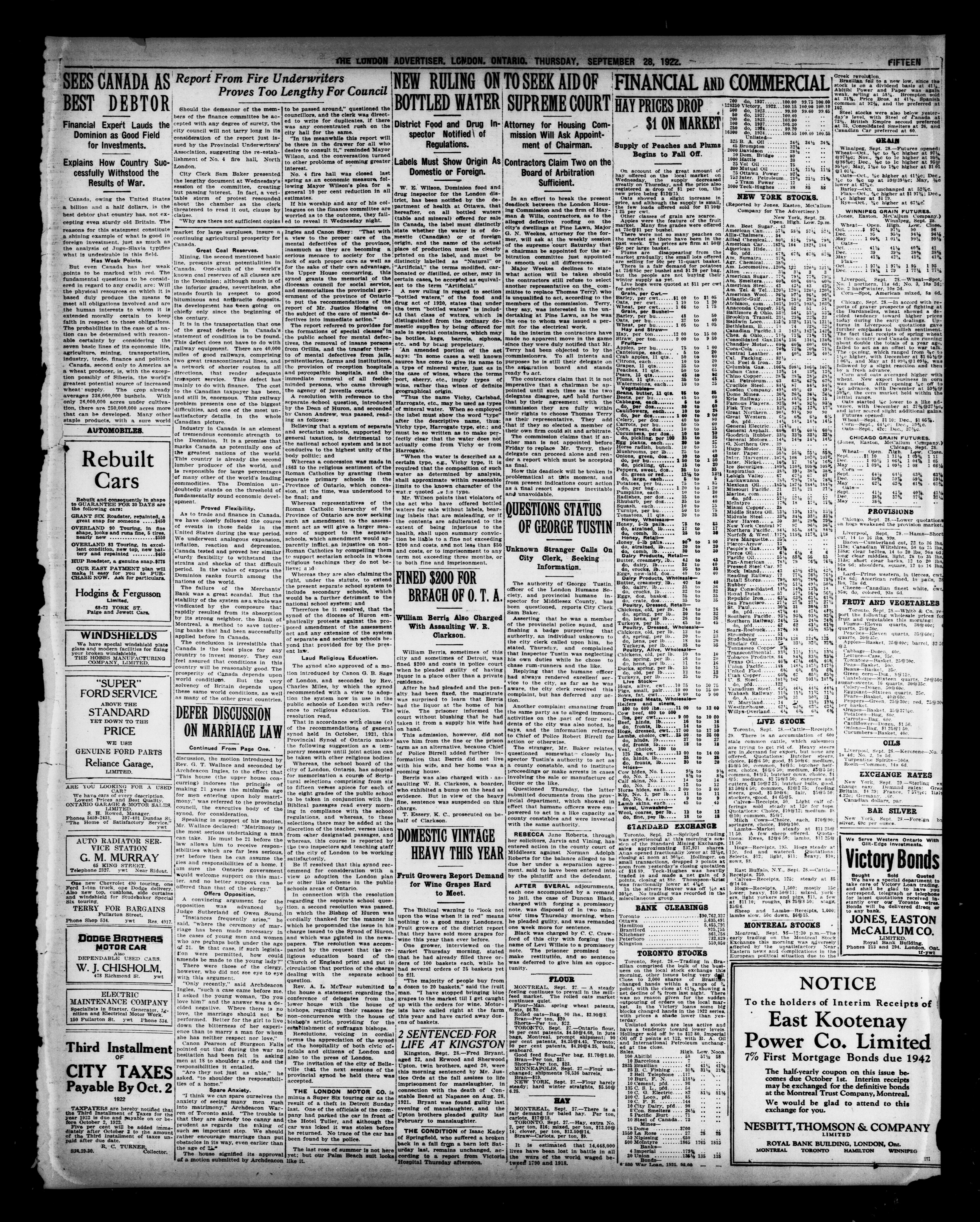 London advertiser. : The London Advertiser : 59th Year, No. 23453 (September 28, 1922)