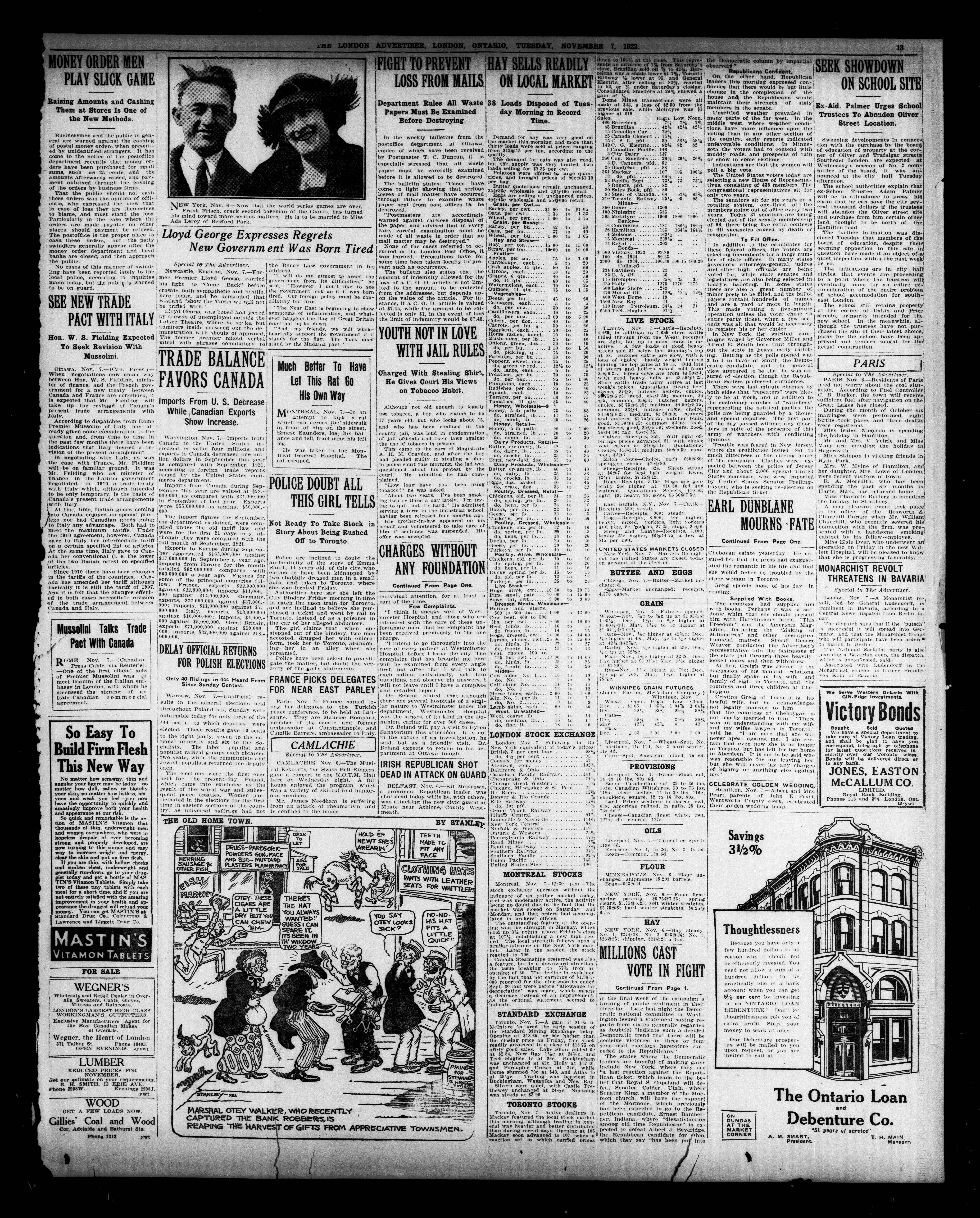 London advertiser. : The London Advertiser : 59th Year, No. 23487 (November 7, 1922)