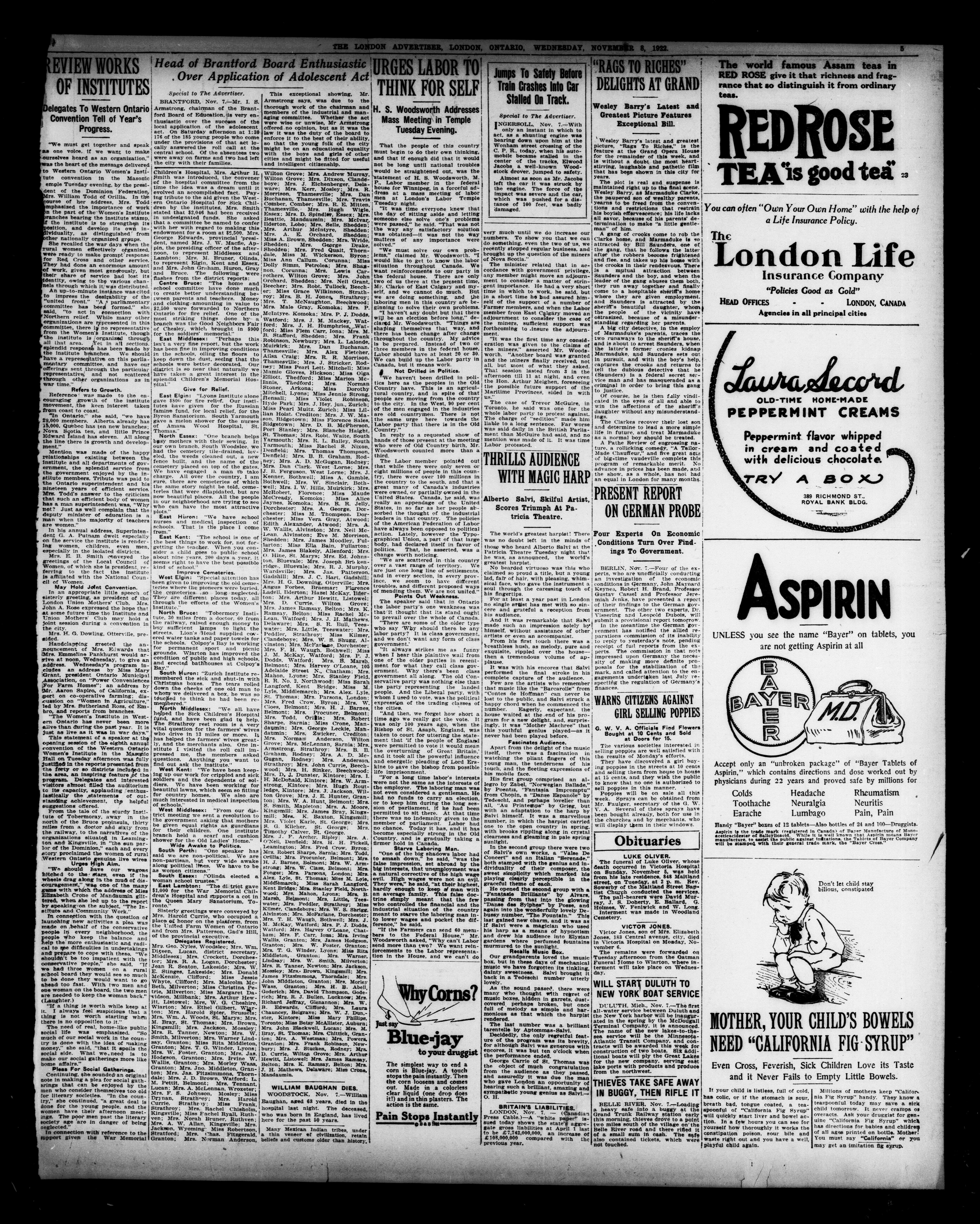 London advertiser. : The London Advertiser : 59th Year, No. 23488 (November 8, 1922)