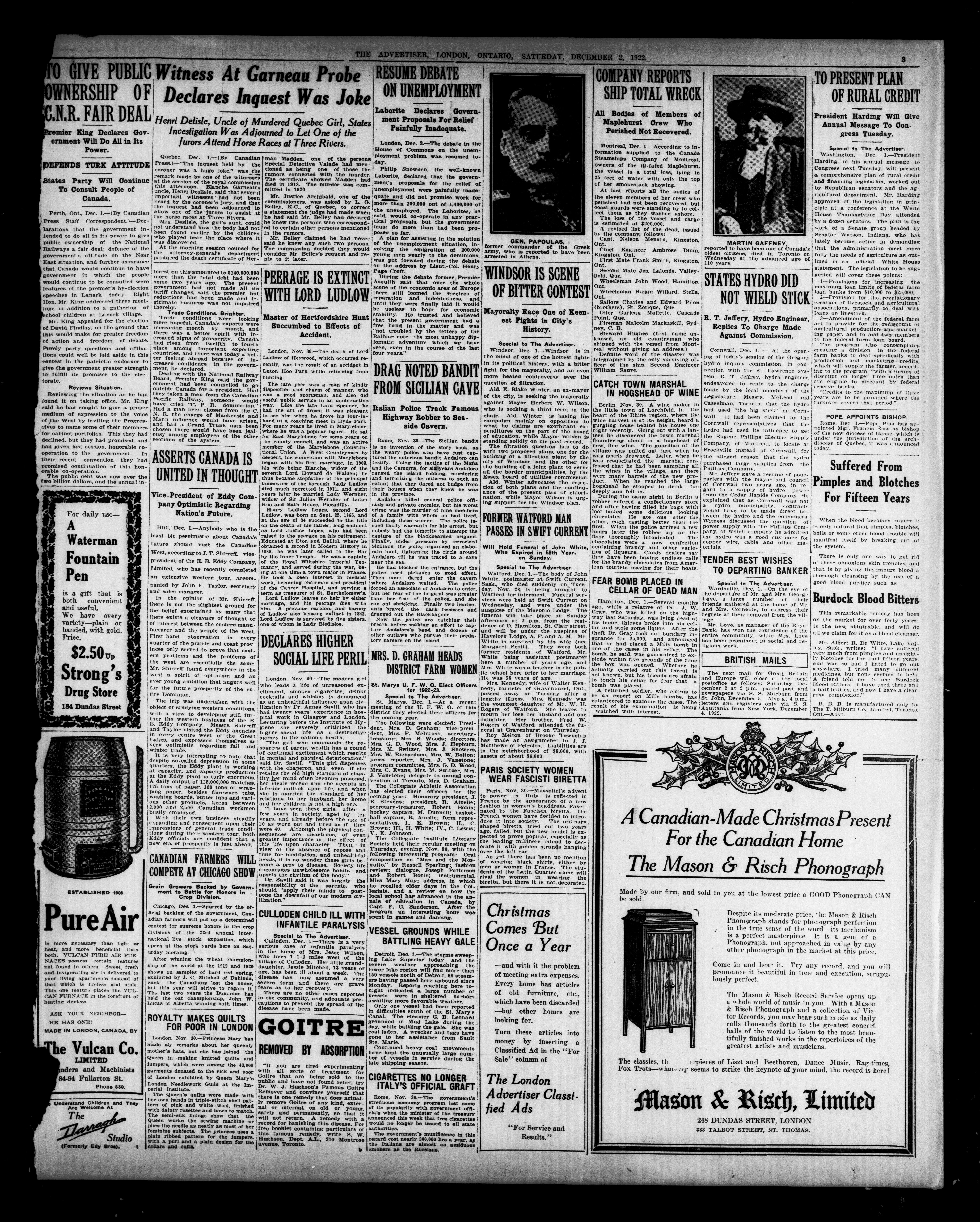 - The London Evening Advertiser : 60th Year, No. 23509 (December 2, 1922)