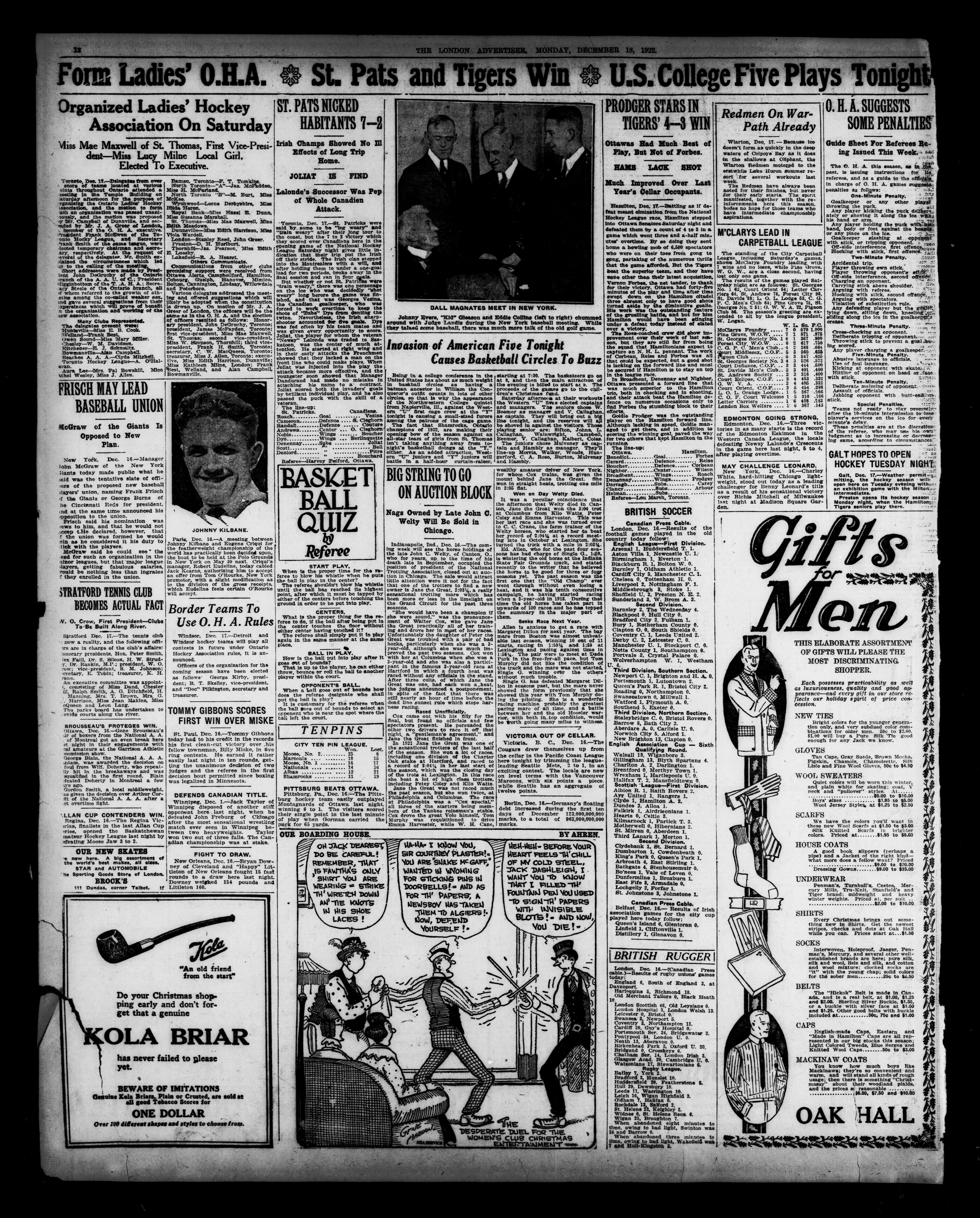 London Evening Advertiser. : The London Evening Advertiser : 60th Year, No. 23522 (December 18, 1922)