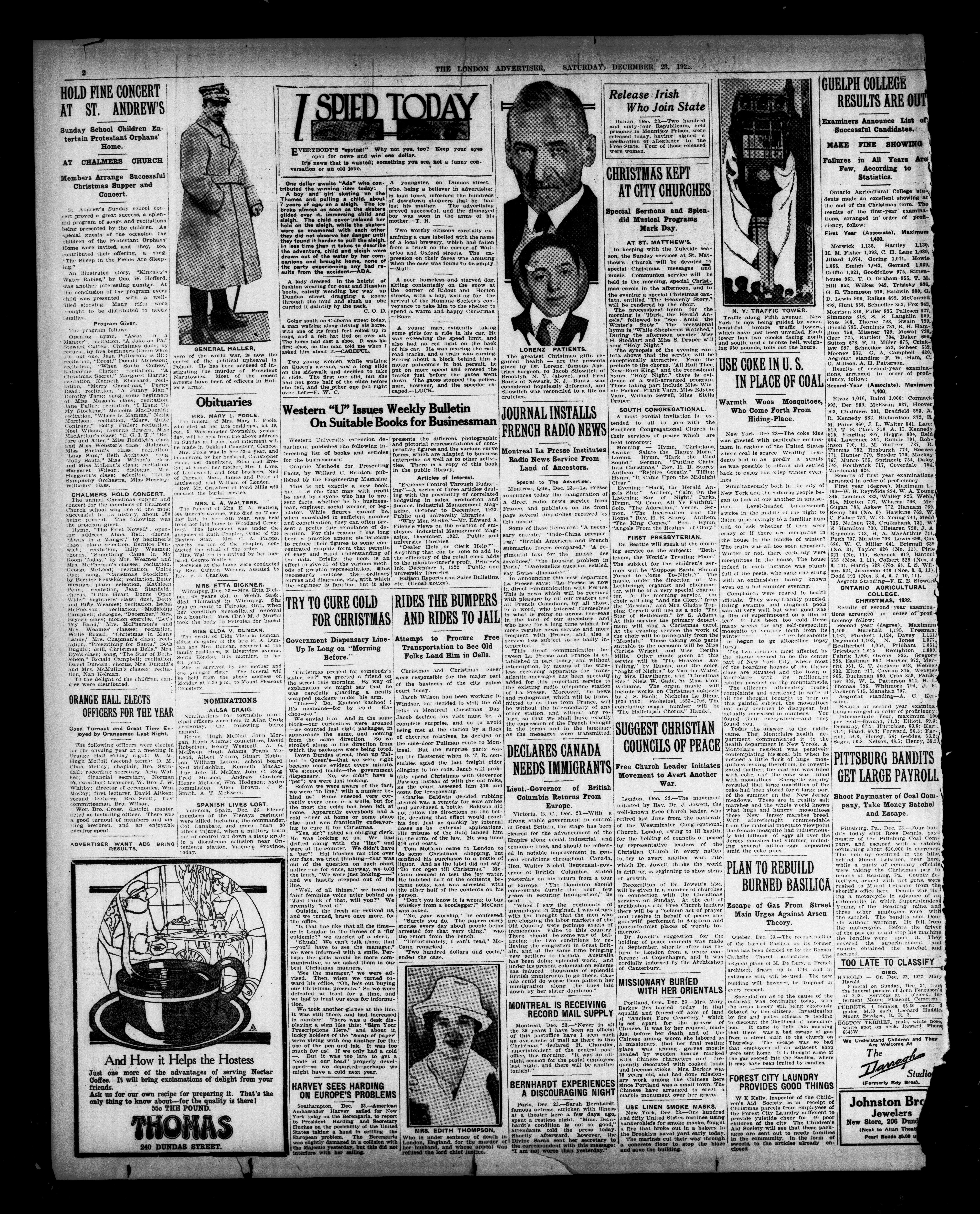 London Evening Advertiser. : London Evening Advertiser : 60th Year, No. 23527 (December 23, 1922)