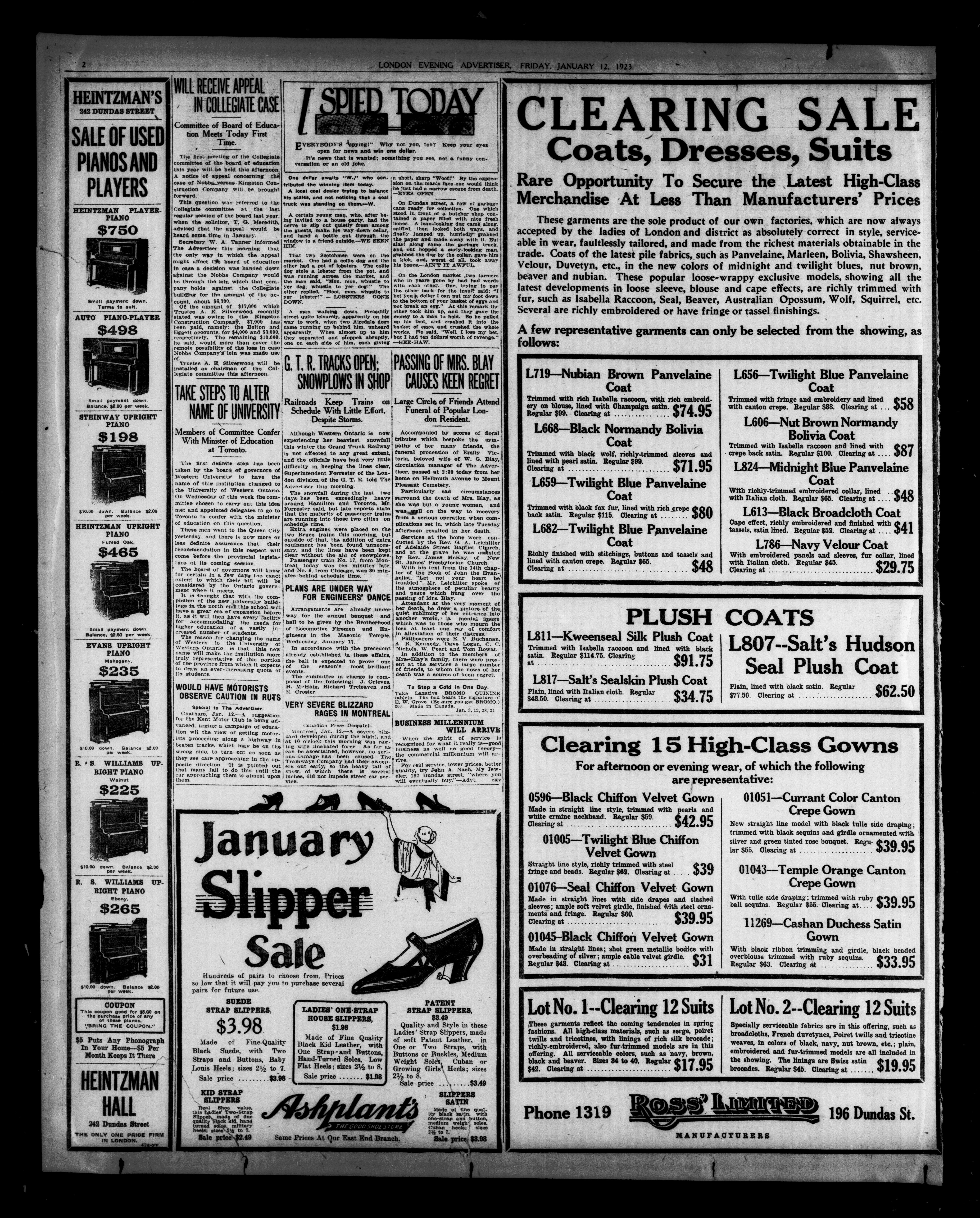 - London Evening Advertiser : 60th Year, No. 23544 (January 12, 1923)